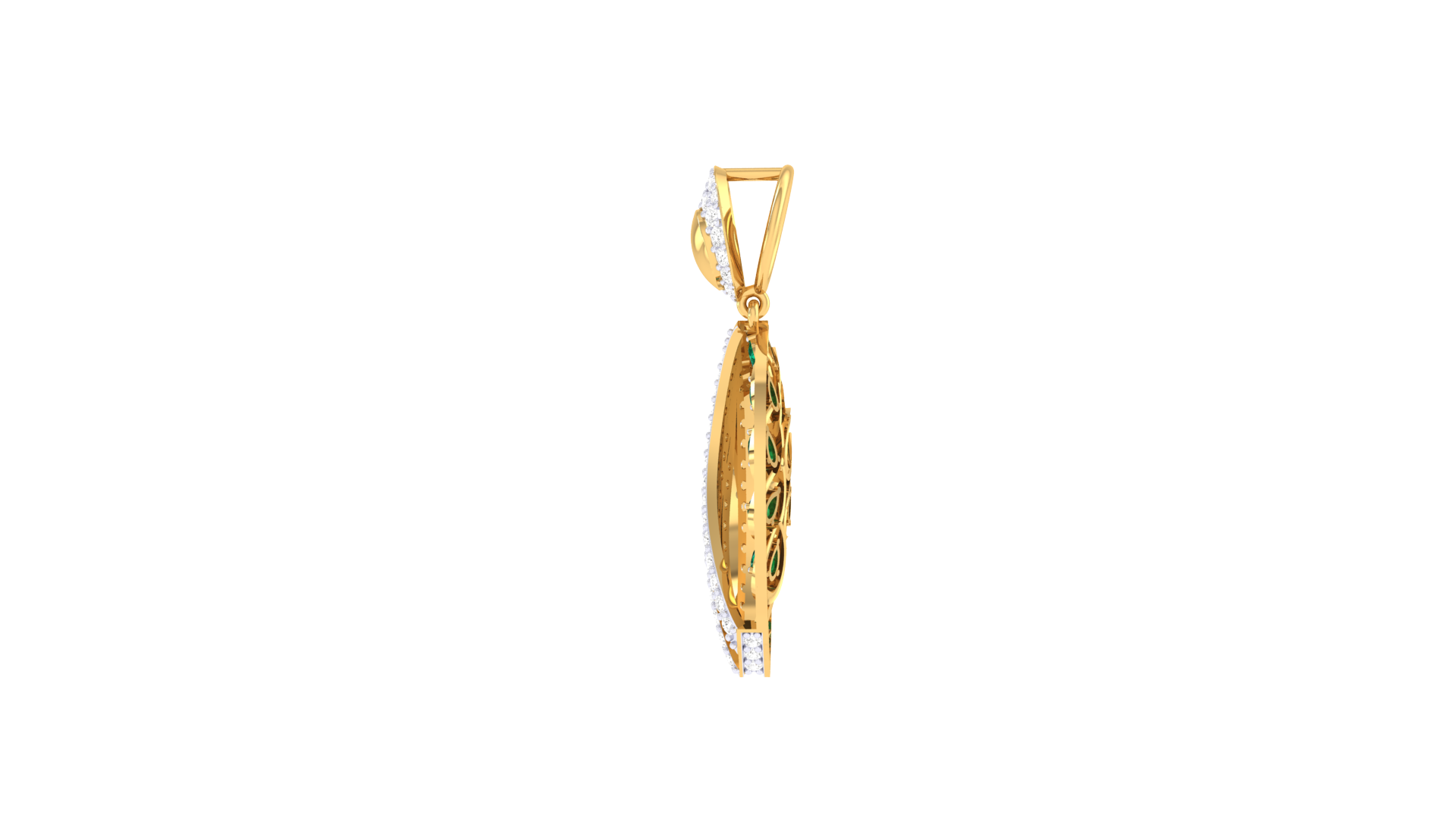 A circular diamond-studded bail completes the piece, offering timeless elegance with a touch of nature-inspired charm.