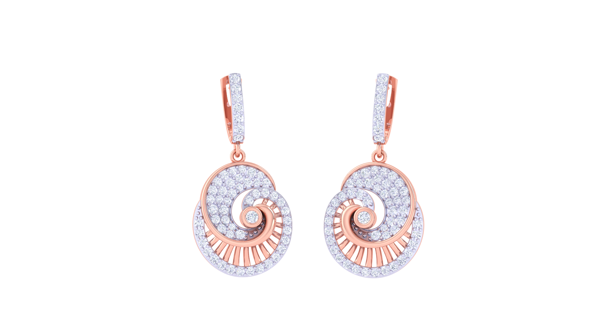 The outer curves shimmer with 0.96 carats of brilliant diamonds set in silver-toned swirls, while the inner spiral showcases intricate golden detailing that adds depth and dimension.