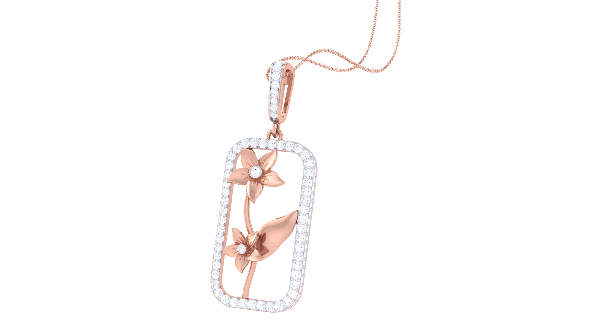A radiant expression of nature’s grace, this pendant necklace features a rectangular frame with rounded corners, meticulously crafted in 3.05 grams of gold.