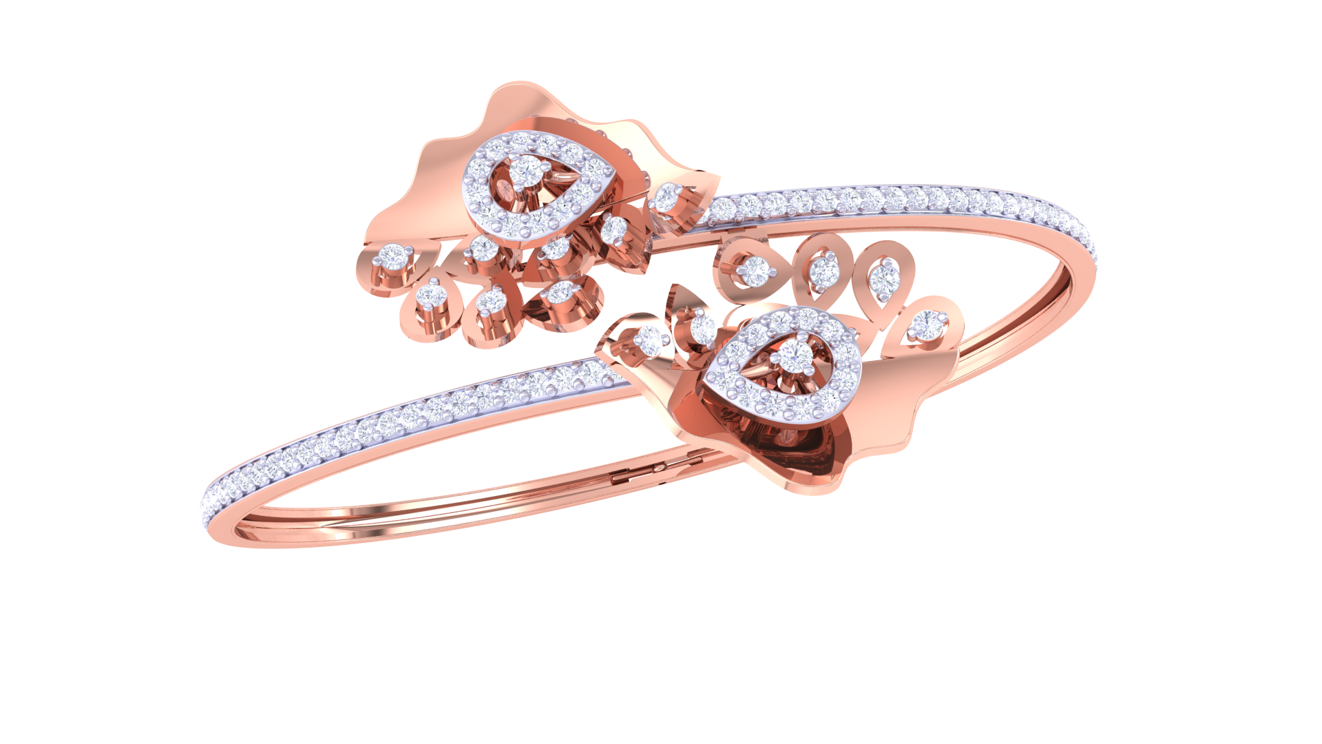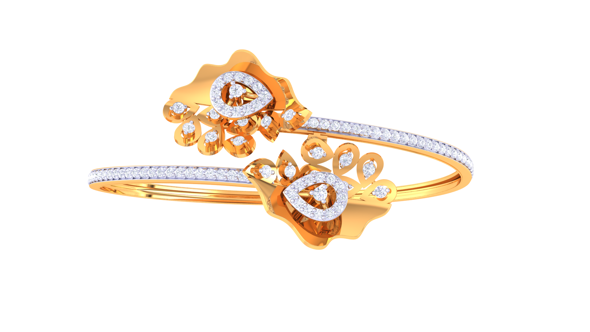 Floral Gold Bracelet With Teardrop Centerpieces - 1.02 Ct Diamonds