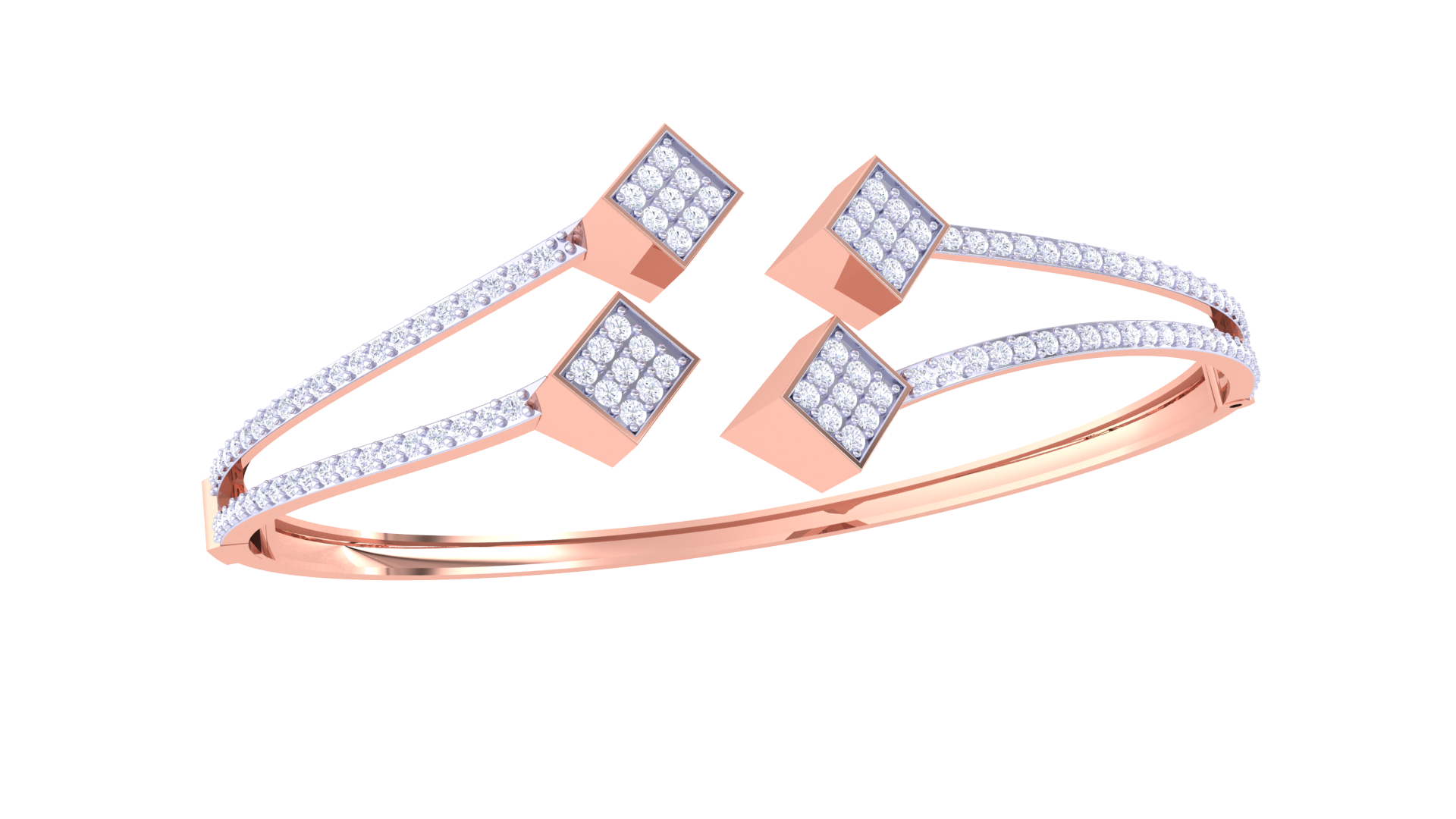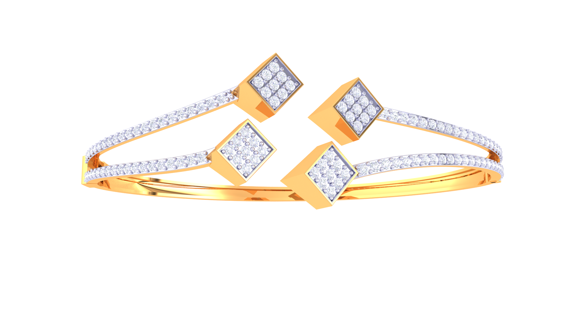 Crafted from 8.40 grams of radiant yellow gold, this bracelet showcases a bold yet balanced design featuring four square-shaped motifs, each encrusted with a grid of dazzling white stones.