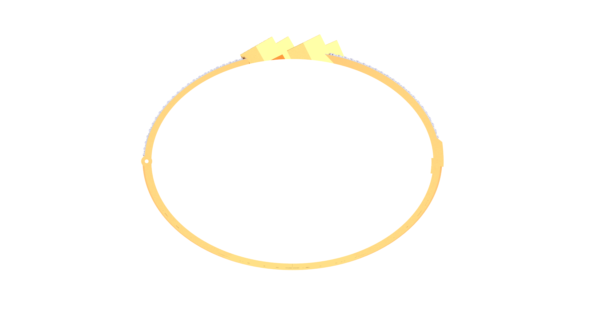 The dual-band structure, paved with diamonds along its length, adds symmetry and brilliance to the piece.