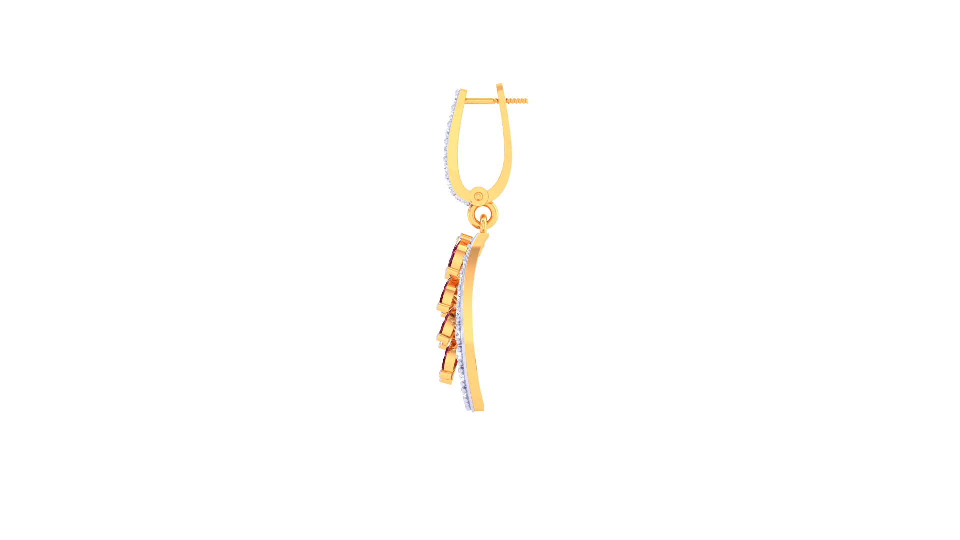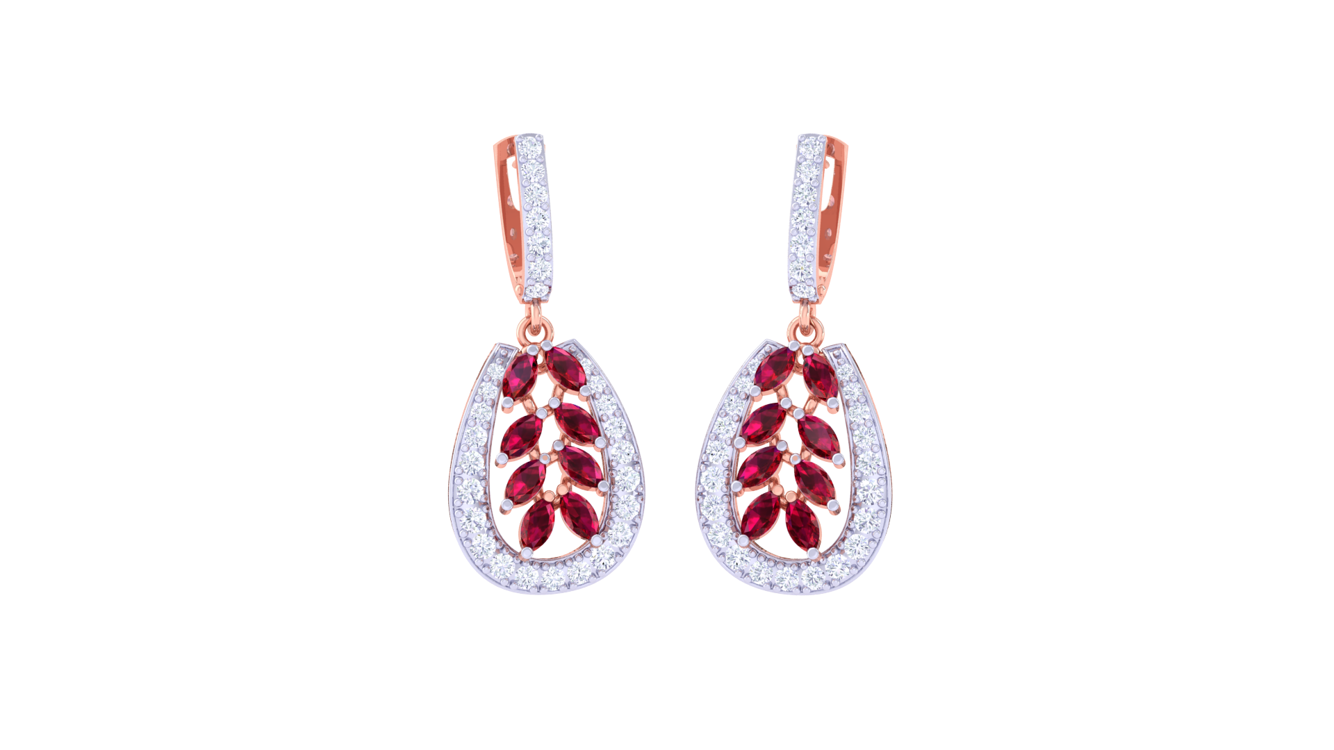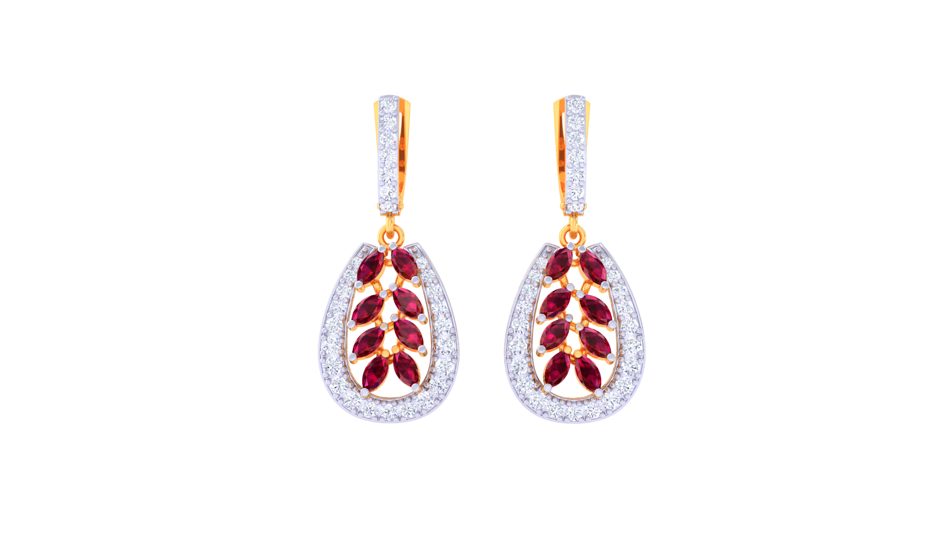 Ruby Teardrop Earrings In Gold With Leaf Motif - 1.06 Ct Diamonds