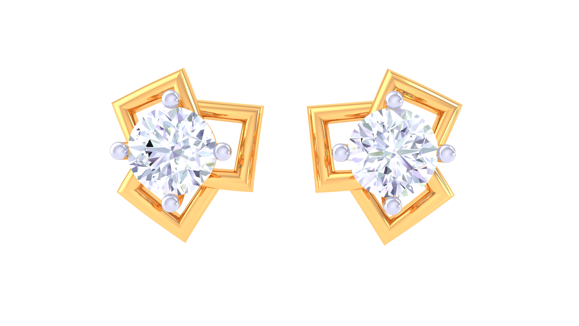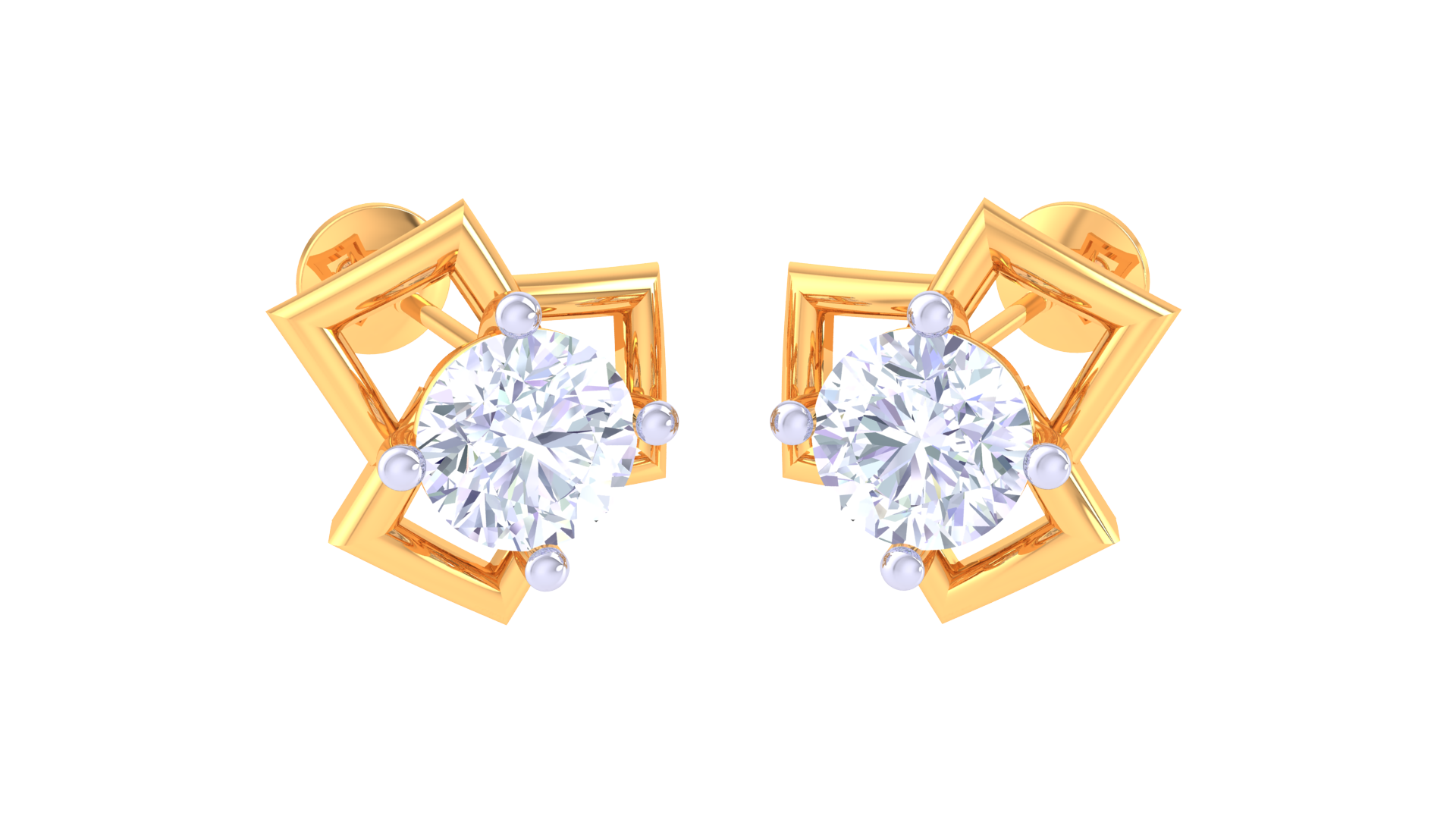 Sculpted from 1.20 grams of polished gold, each earring features a central round brilliant-cut diamond totaling 0.38 carats, framed by an angular, star-inspired silhouette.