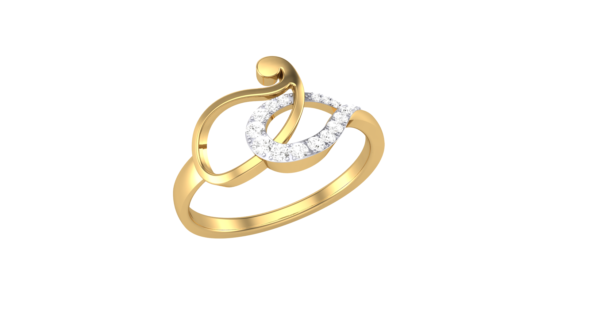 Lumiere Sculpted Leaf Gold Ring with - 0.11 Ct Round Diamond Accents