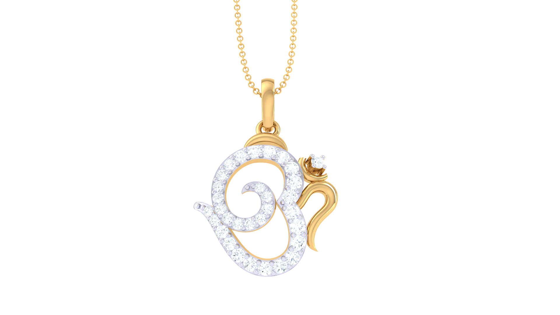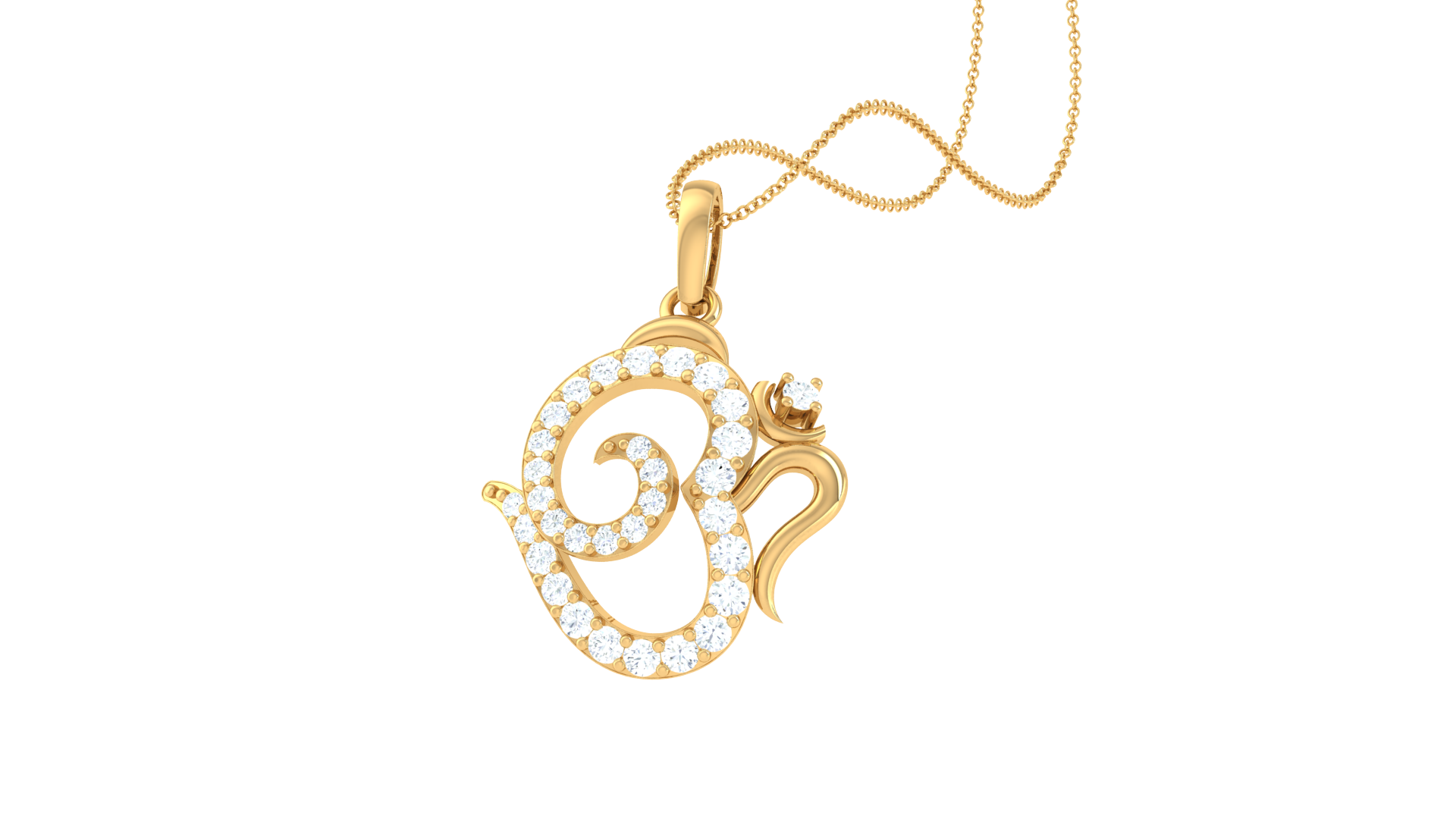 Shri Om Gold Pendant - 0.26 Ct Diamond Highlights
