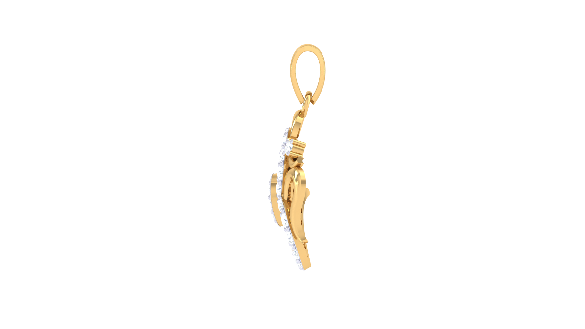 Embodying divine grace and intricate craftsmanship, this Ganesha-shaped gold pendant weighs 0.84 grams and sparkles with 0.26 carats of diamonds.