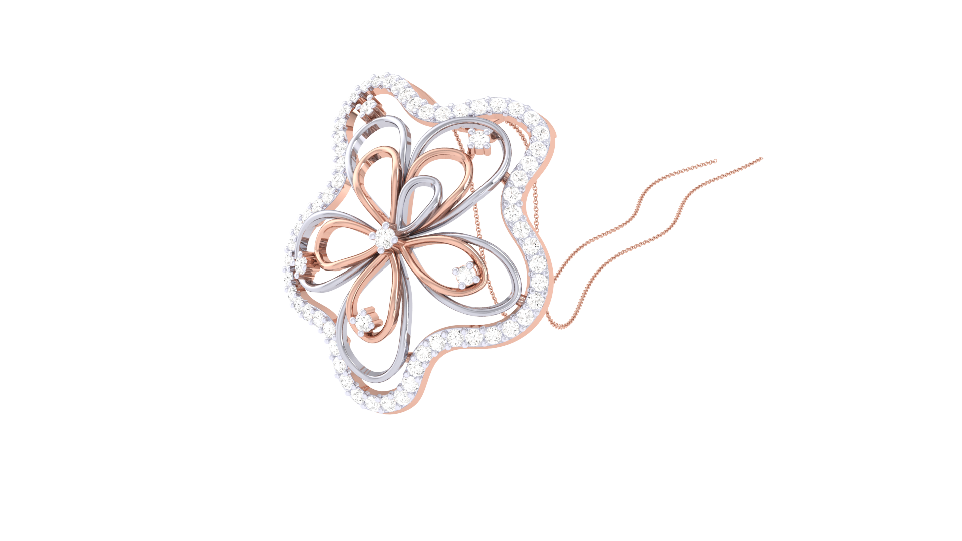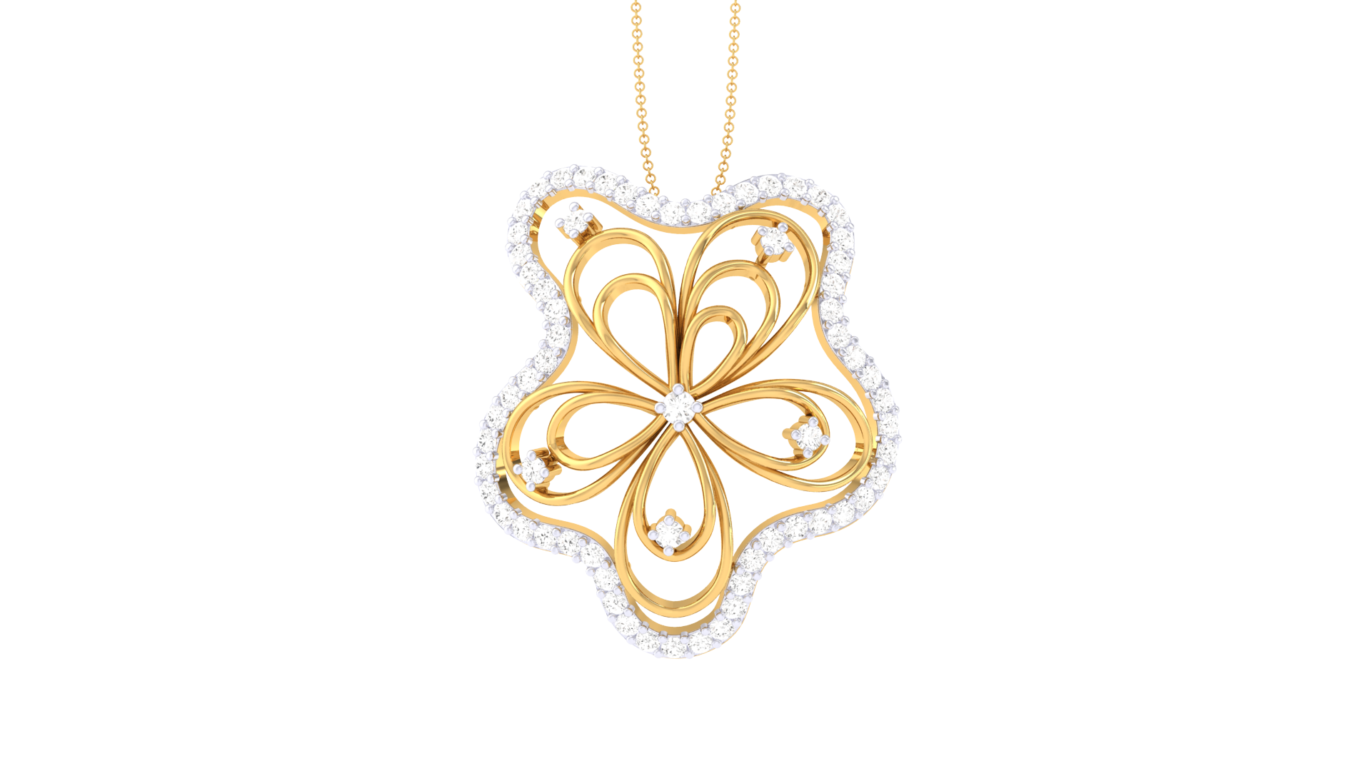 Four-Petal Bloom Pendant - 0.44 Ct Brilliant Cut Diamonds In Gold