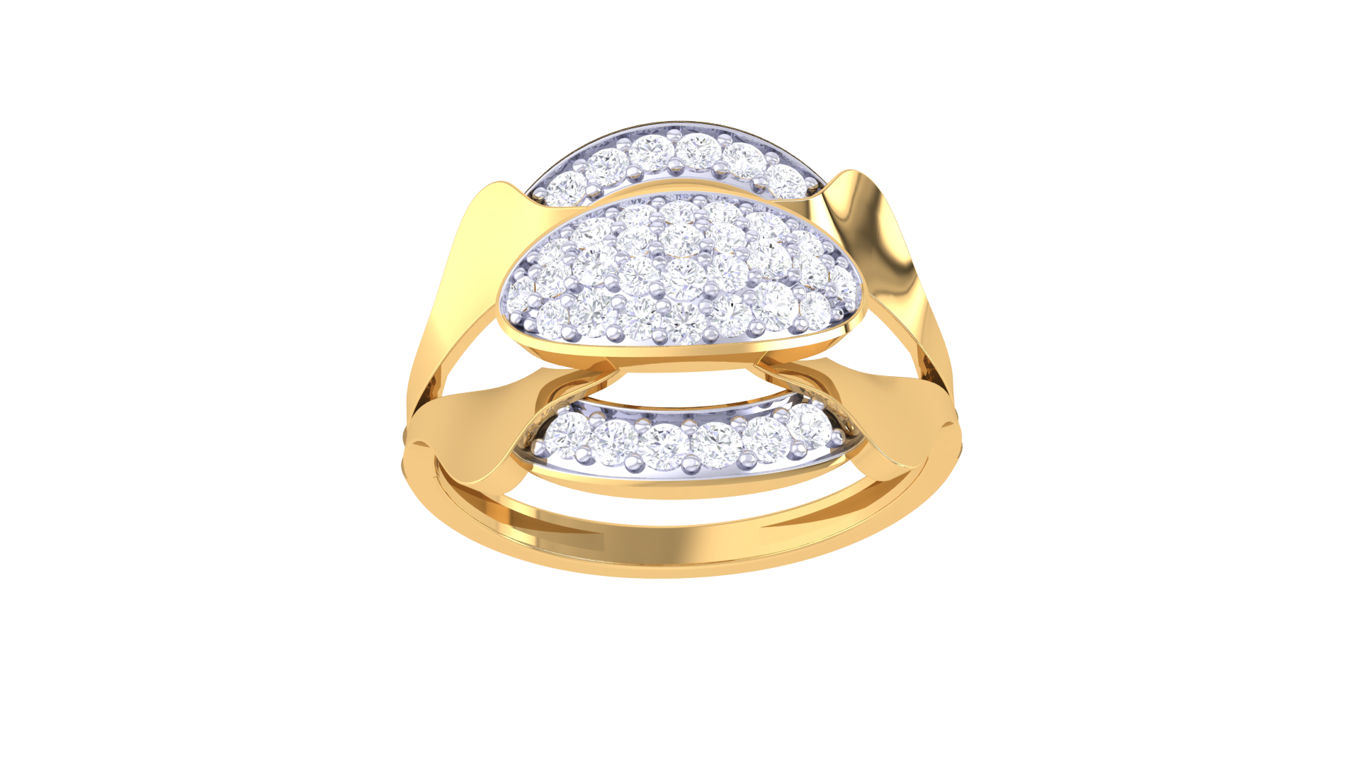 Gracefully sculpted in 18K gold with a weight of 2.02 grams, this ring showcases 0.31 carats of pavé-set diamonds arranged in twin teardrop clusters.