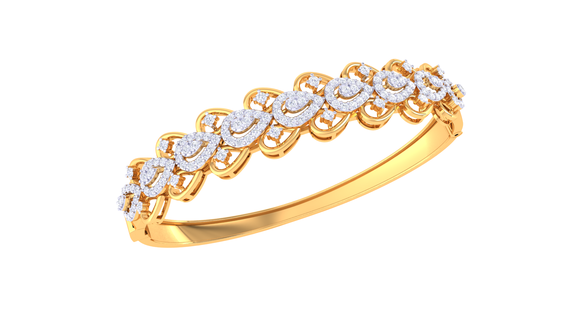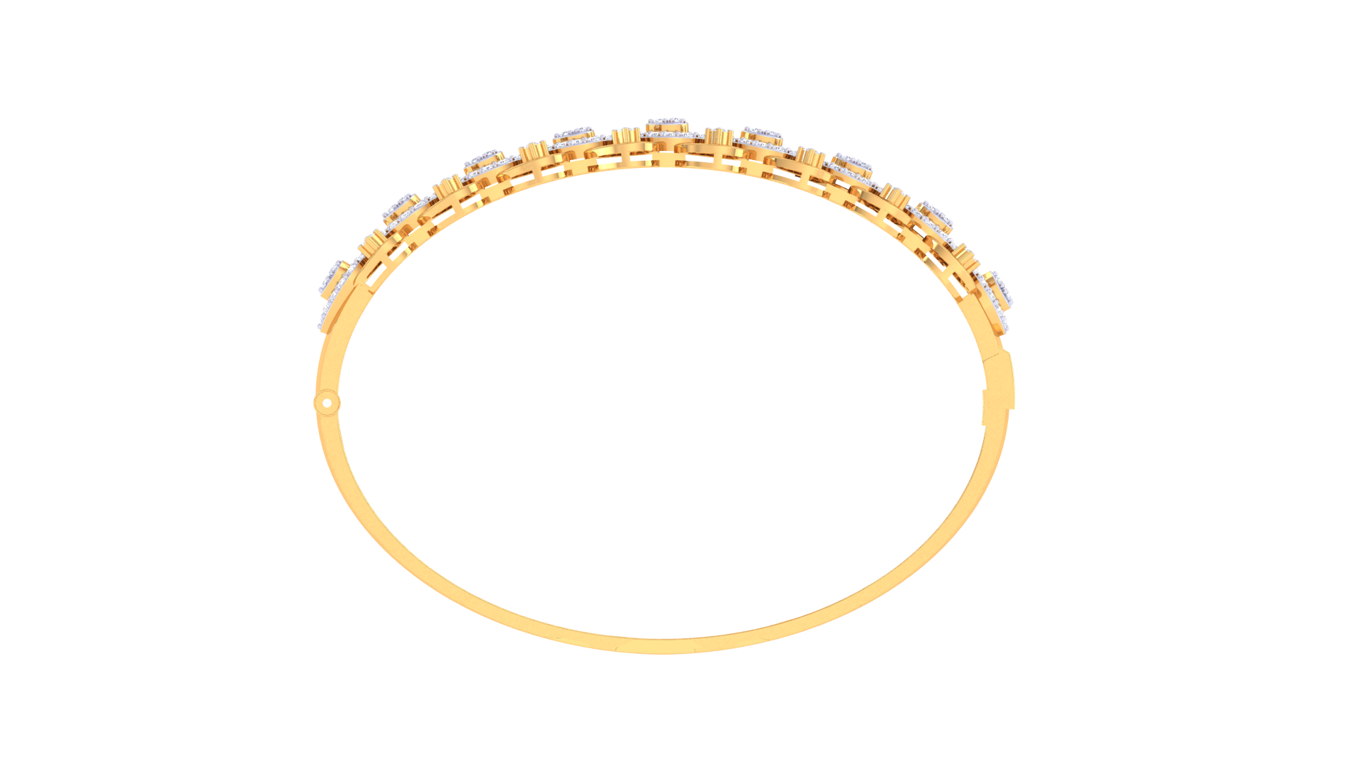 This elegant bangle showcases 14.69 grams of finely crafted gold, adorned with 1.28 carats of sparkling round-cut diamonds.