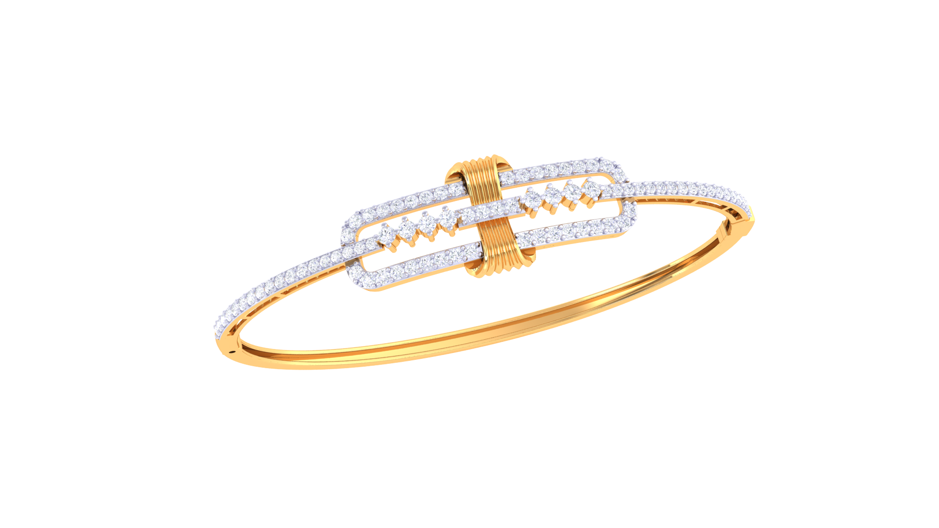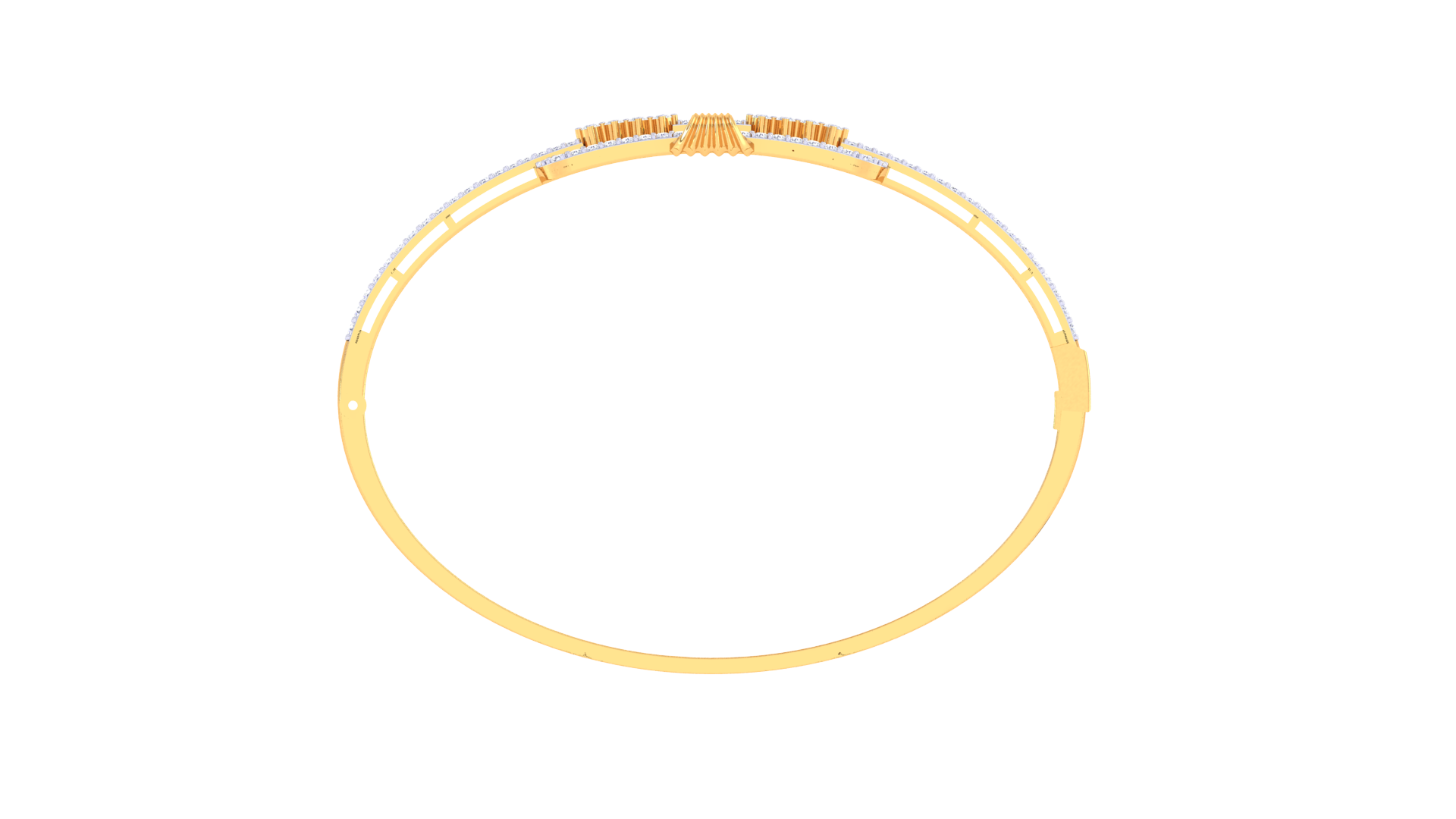 This elegant bangle features 8.73 grams of finely crafted gold, accentuated by 0.91 carats of round-cut diamonds that add a refined sparkle.