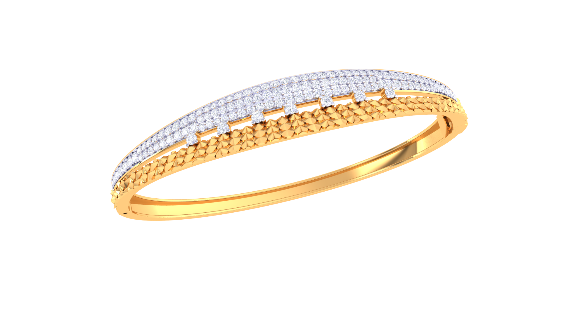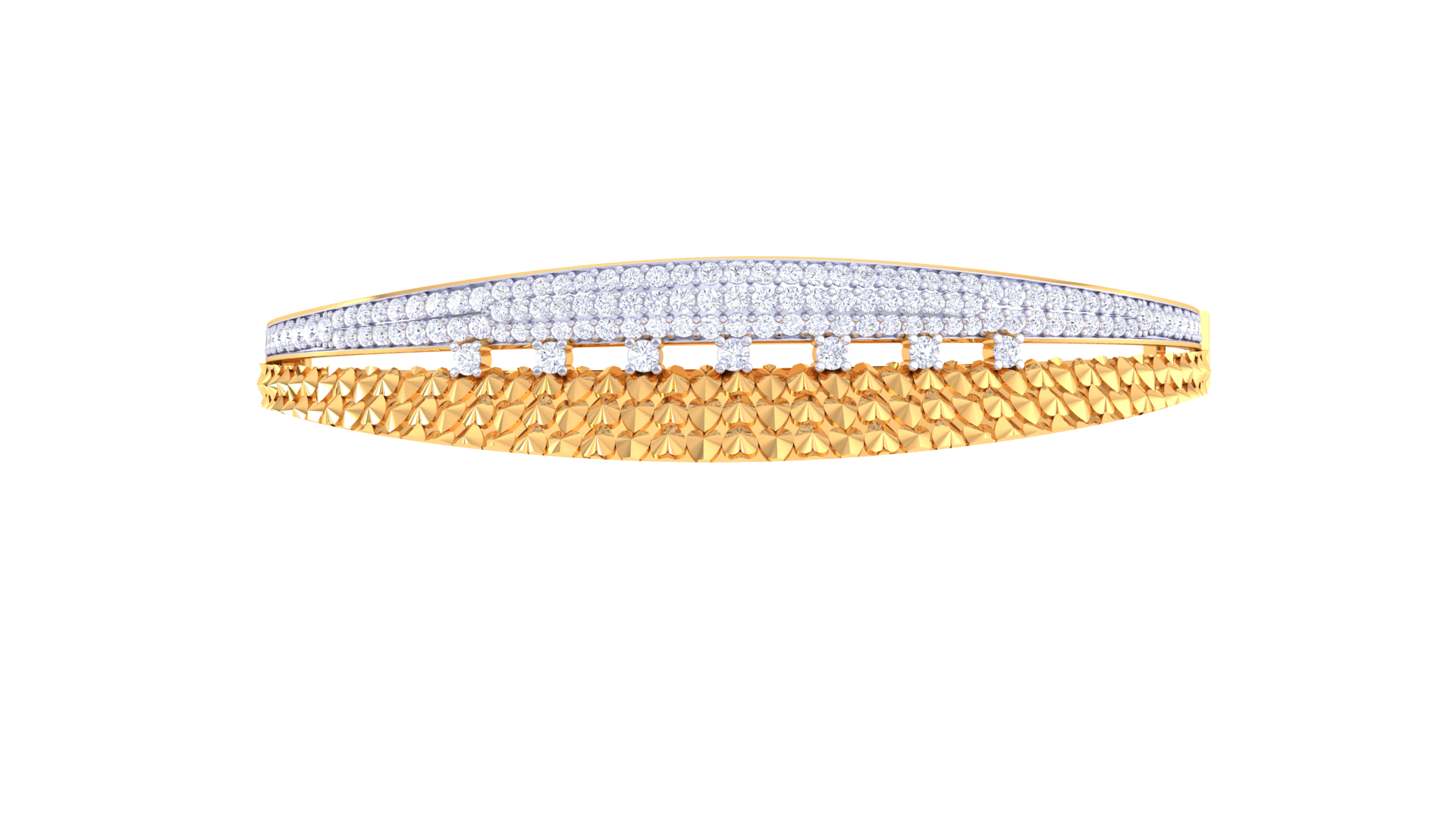 Crafted with precision, this elegant bangle features 15.03 grams of lustrous gold, elegantly accented by 1.05 carats of round-cut diamonds.