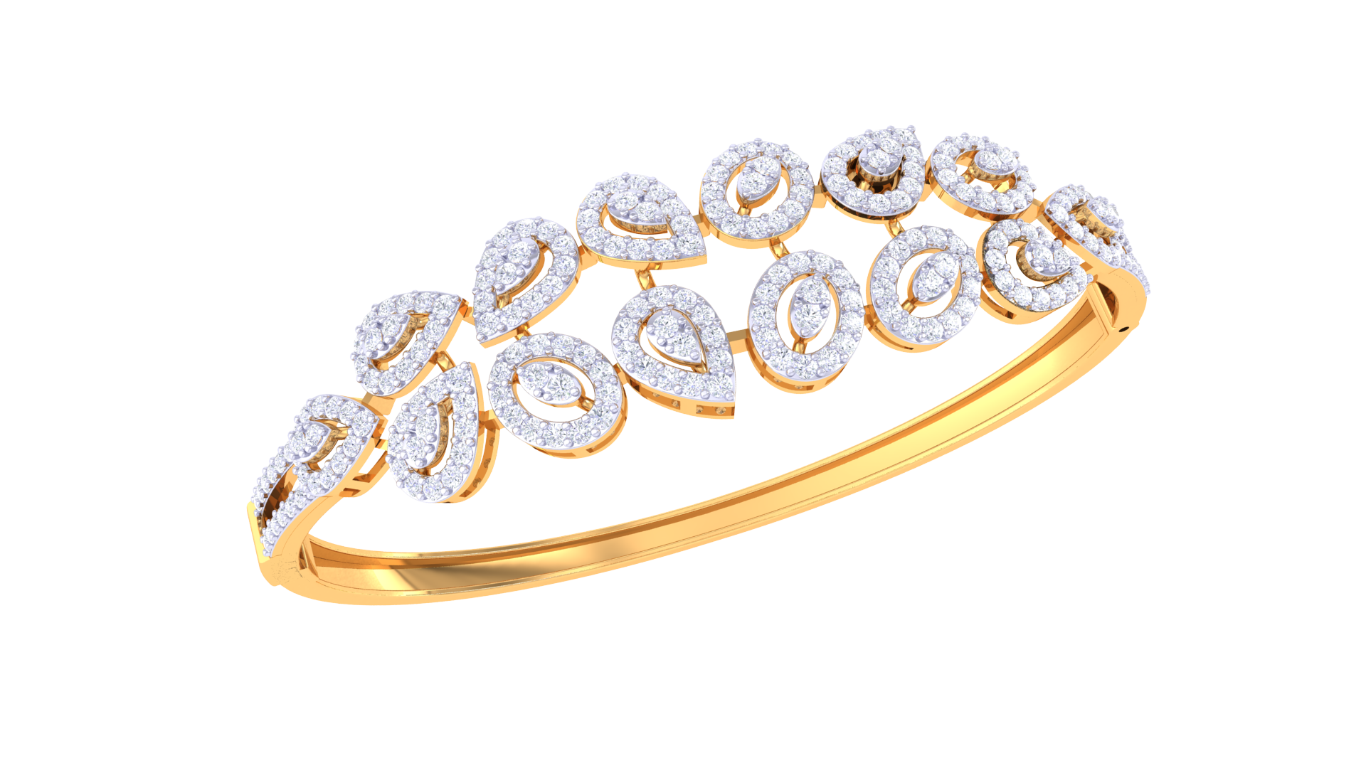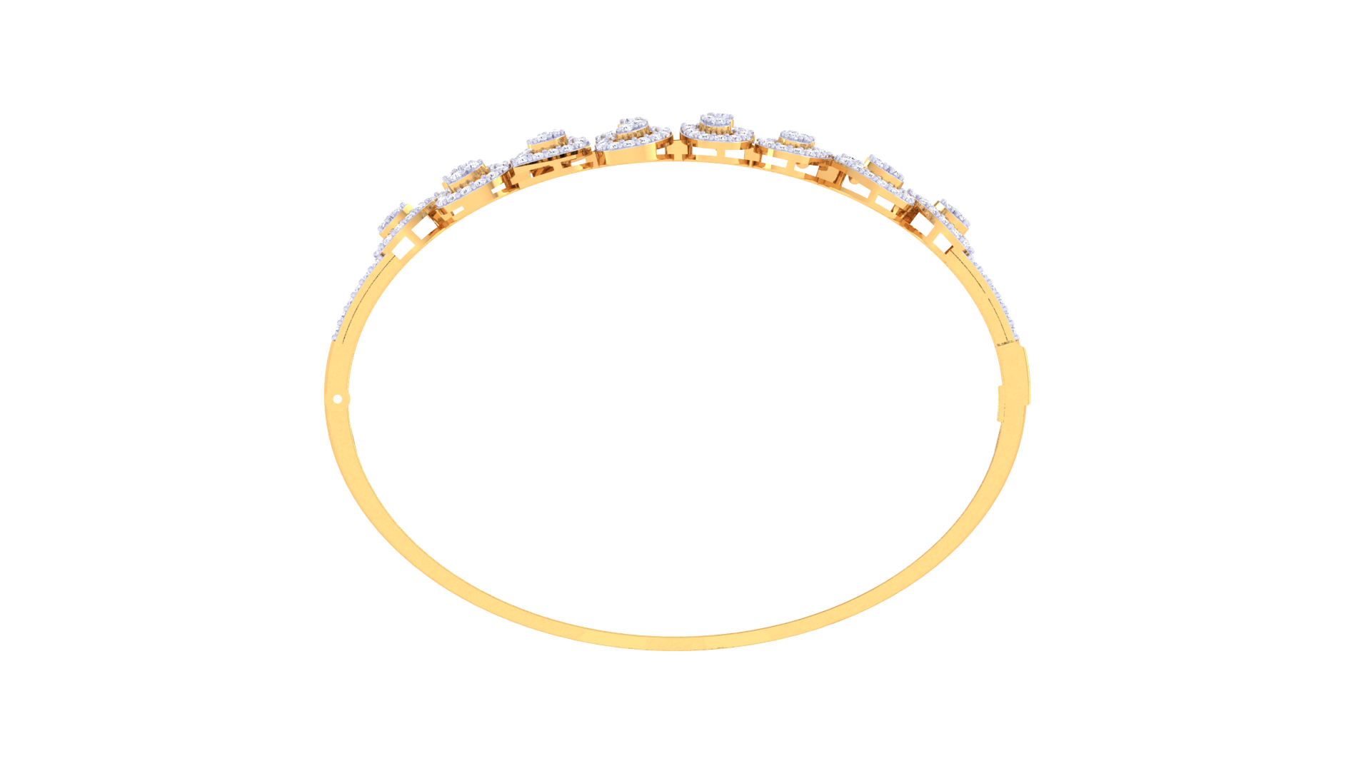 This exquisite bangle showcases a refined design featuring 13.02 grams of gold gracefully accented by 1.94 carats of round-cut diamonds.