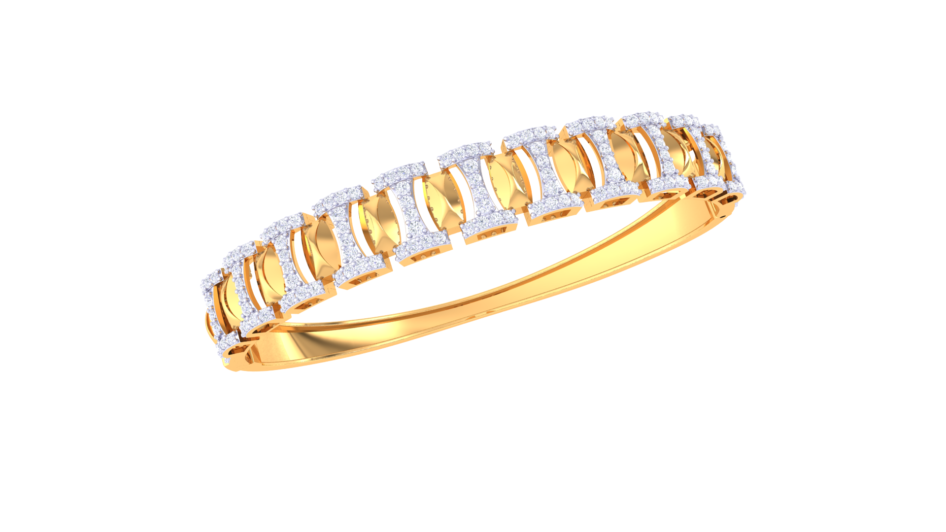 This elegant bangle features 15.18 grams of radiant gold complemented by 1.21 carats of round-cut diamonds.