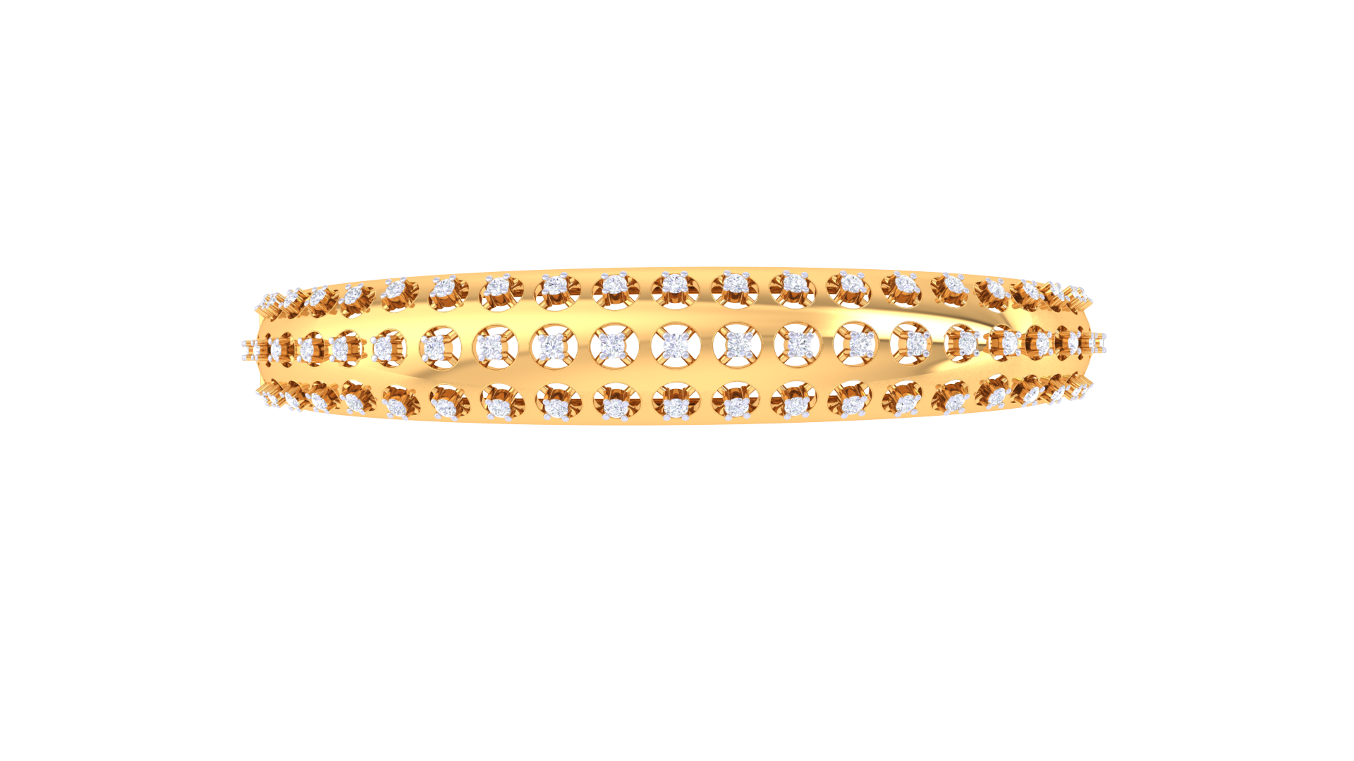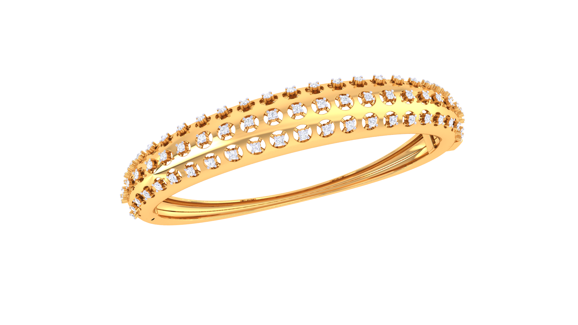 This elegant bangle features a refined 22.52-gram gold base beautifully accented with 0.64 carats of round-cut diamonds.