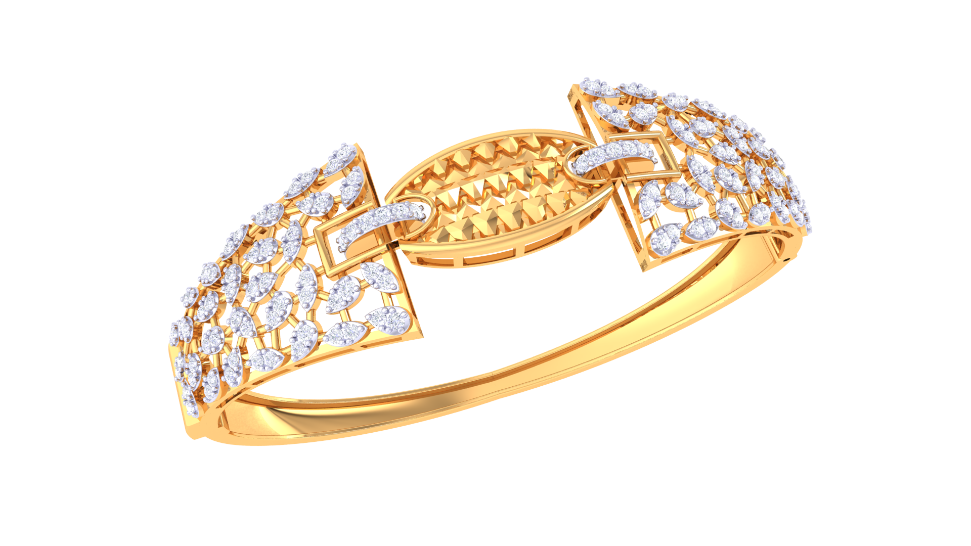 Crafted with 18.27 grams of radiant gold, this exquisite bangle features 1.19 carats of brilliant round diamonds, enhancing its timeless elegance.