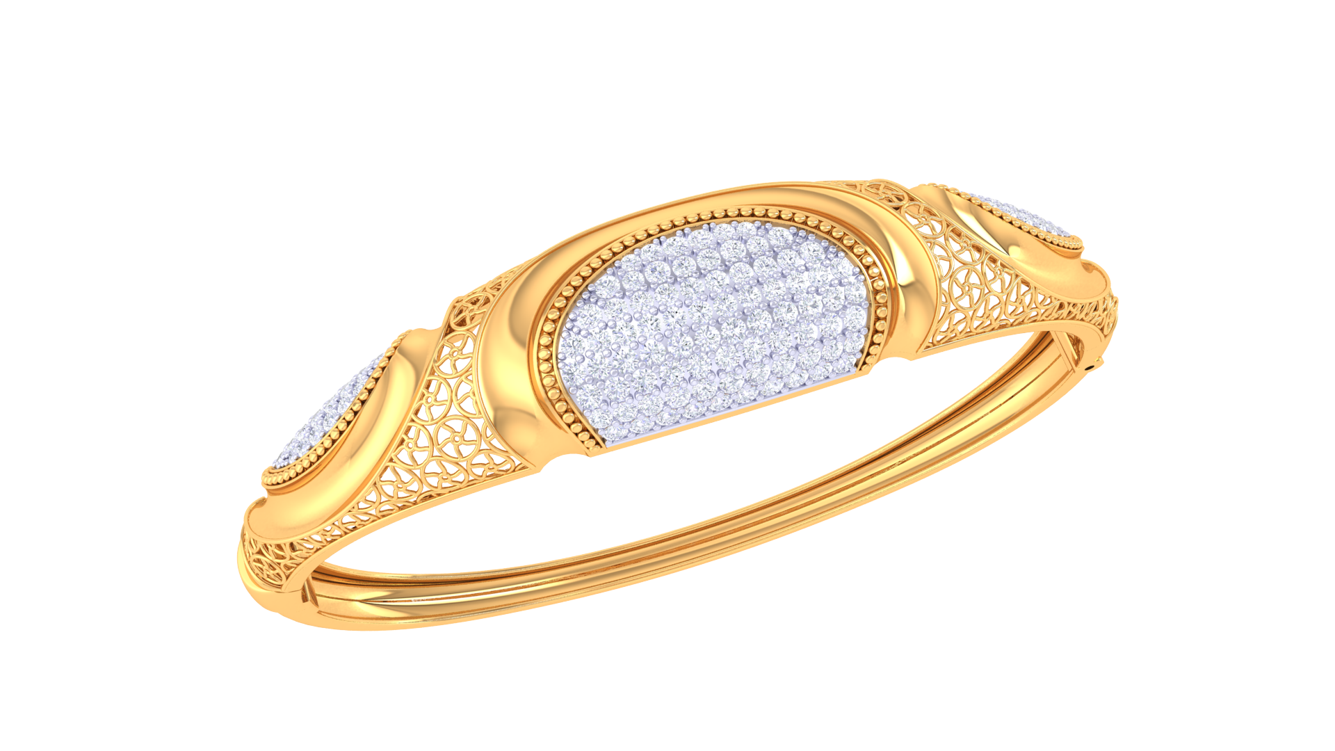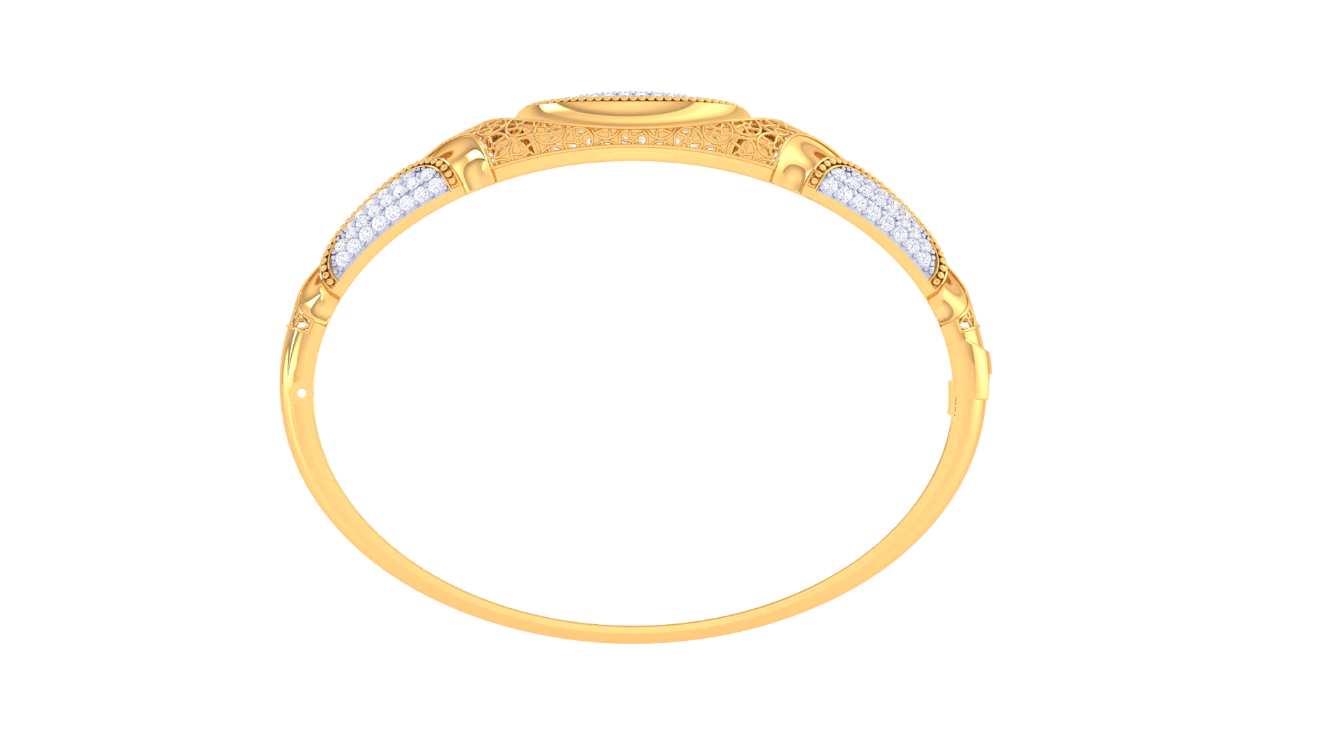 Elevate your elegance with this finely crafted bangle, featuring 11.94 grams of rich gold beautifully complemented by 1.37 carats of stunning round-cut diamonds.