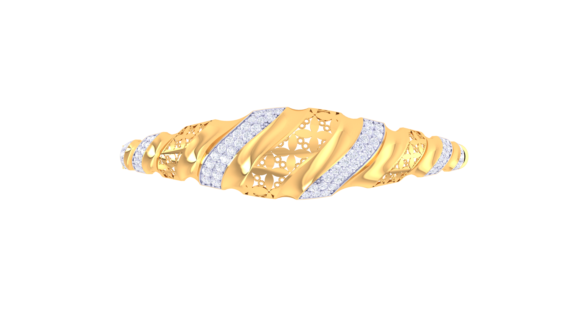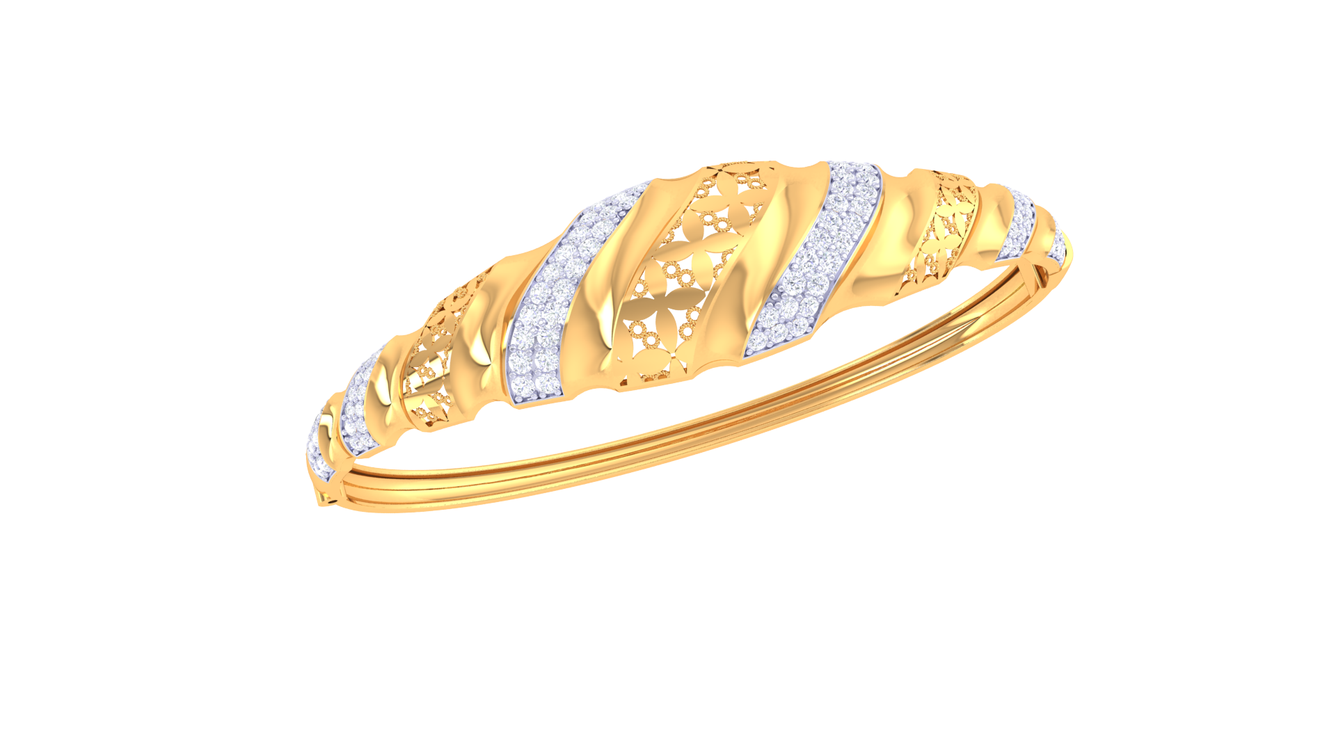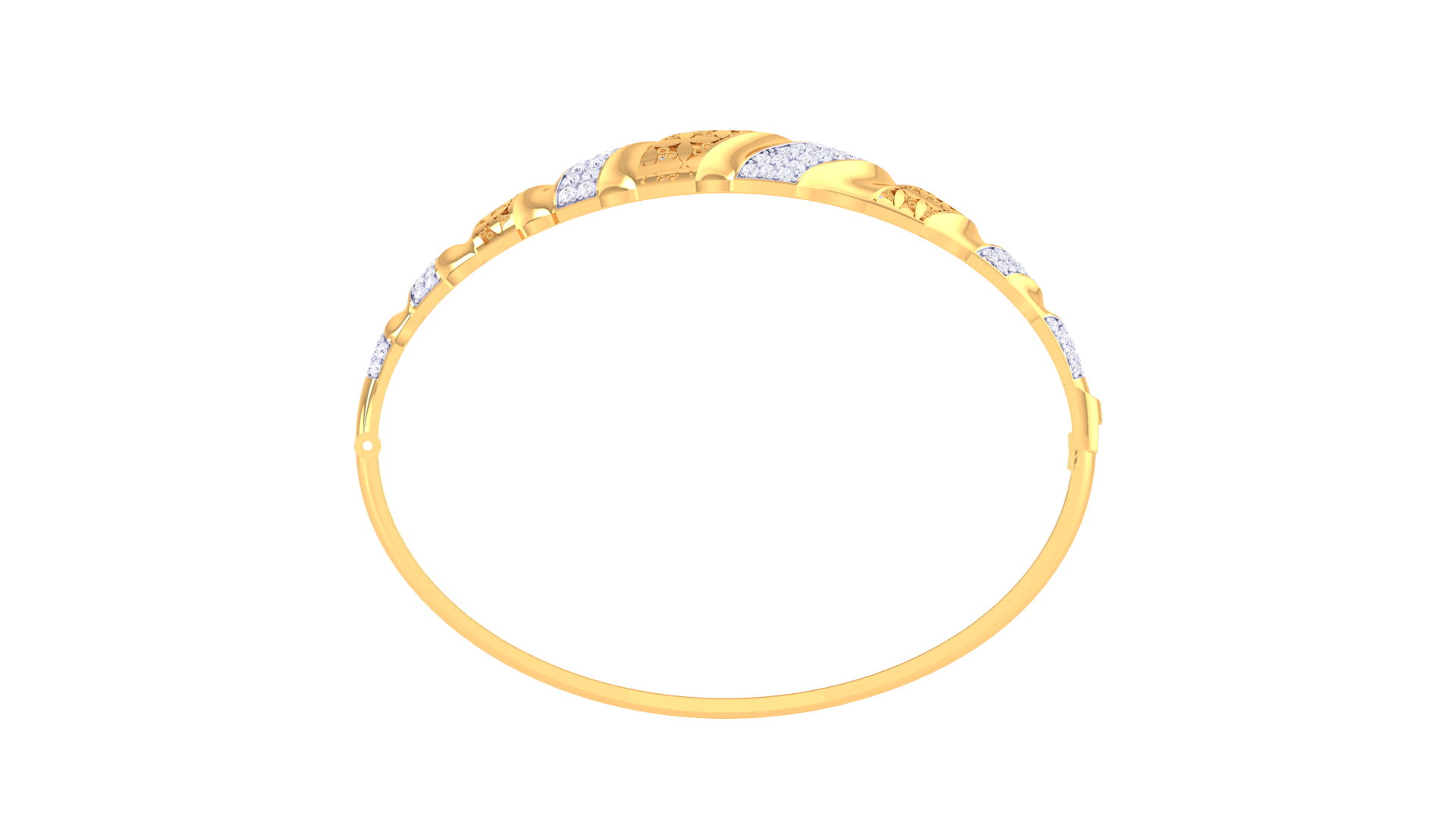 This elegant bangle showcases 8.50 grams of lustrous gold, perfectly complemented by dazzling 0.88 carats of round-cut diamonds.