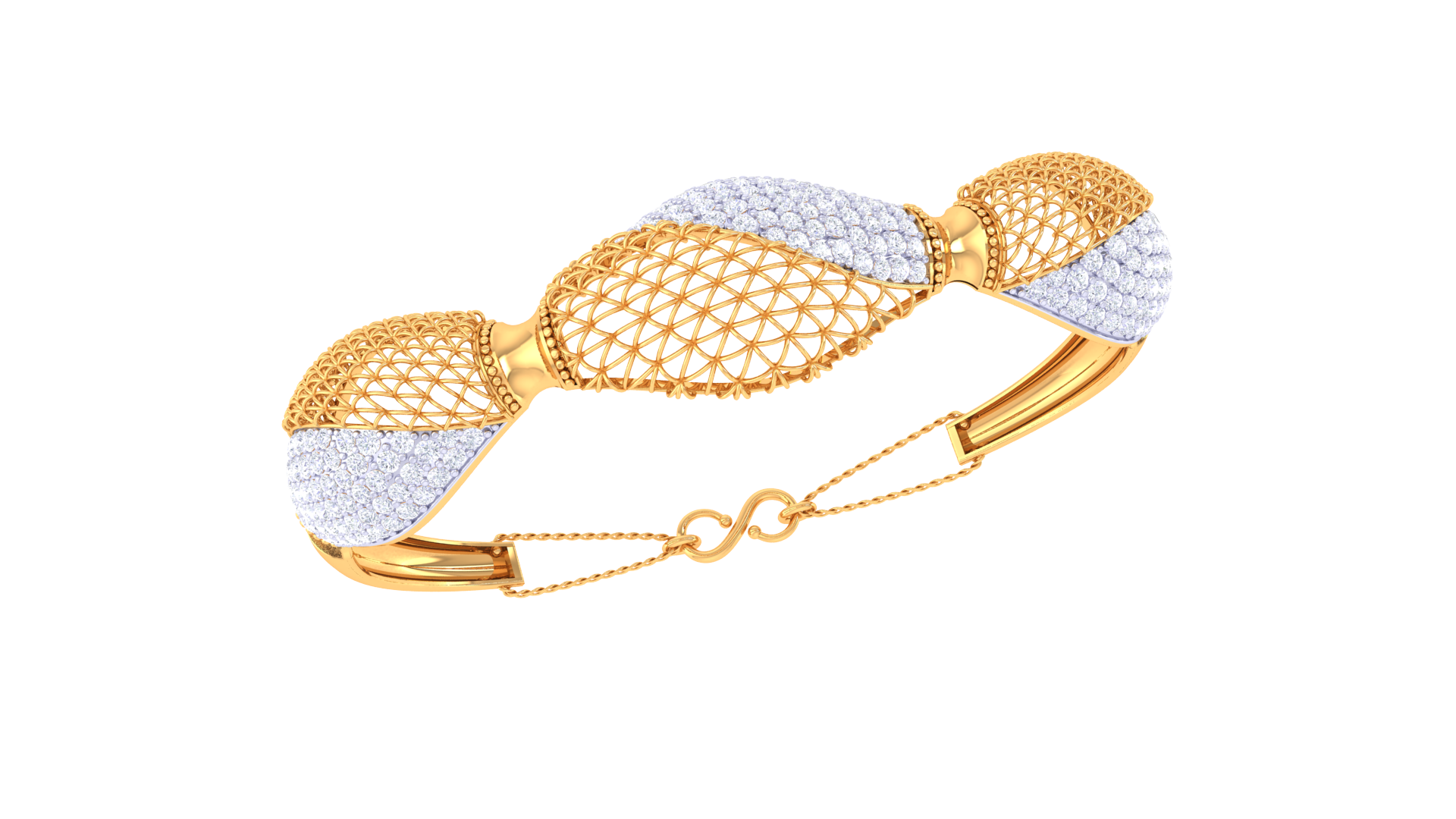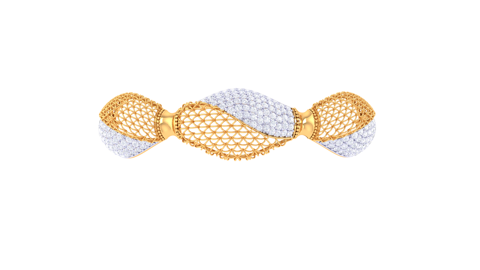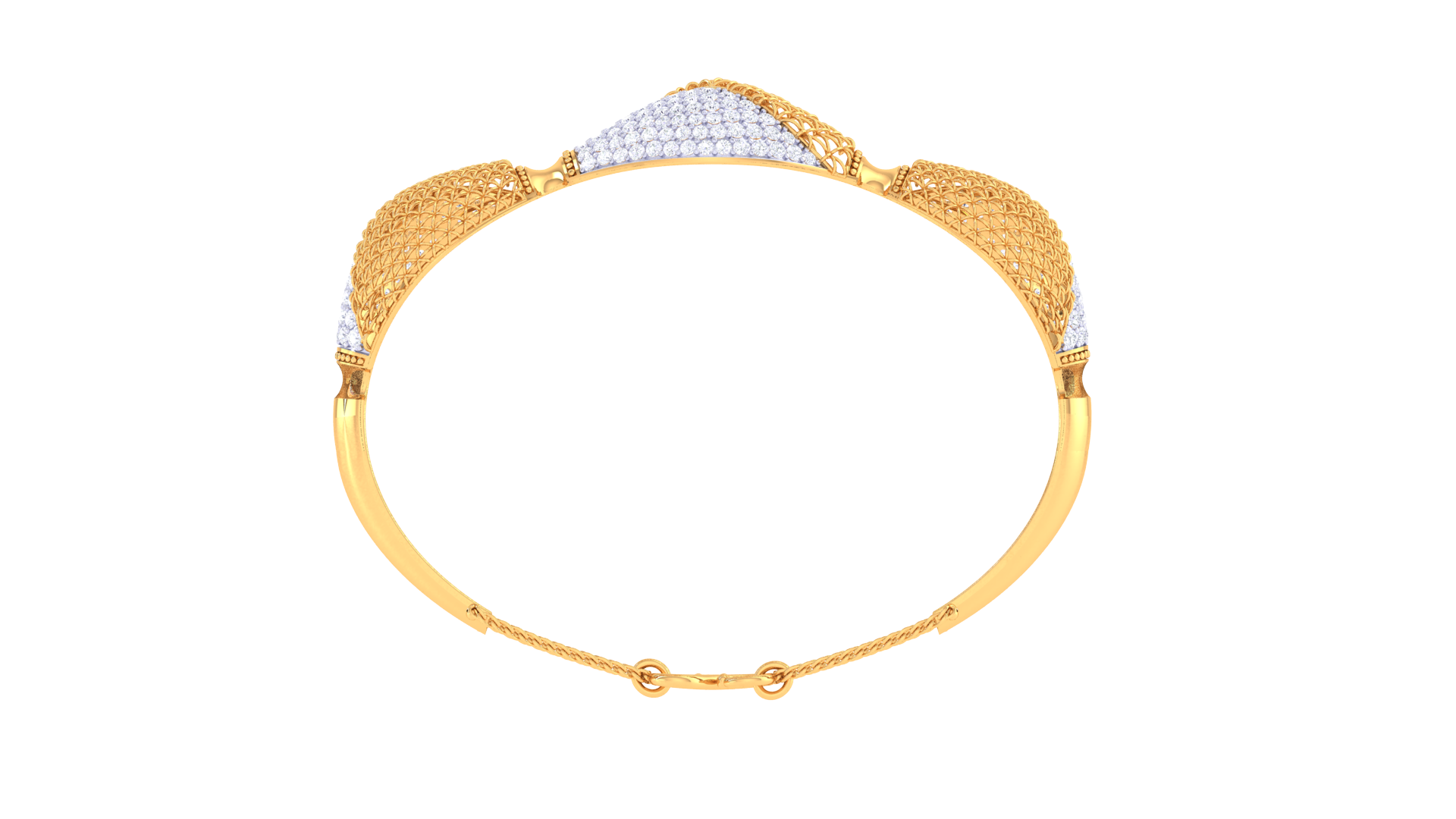 Crafted with 9.76 grams of radiant gold, this exquisite bangle features 2.34 carats of meticulously cut round diamonds.