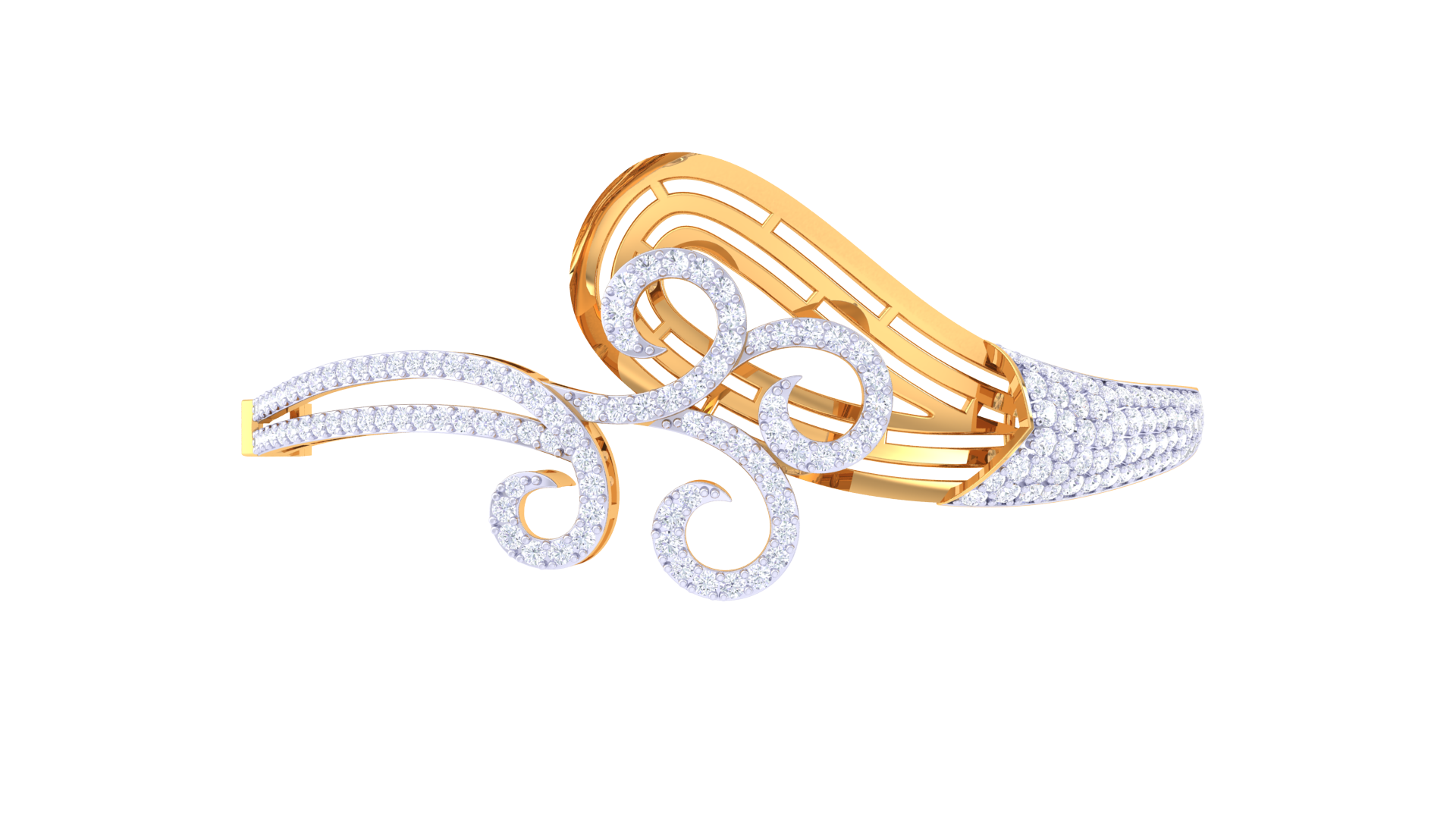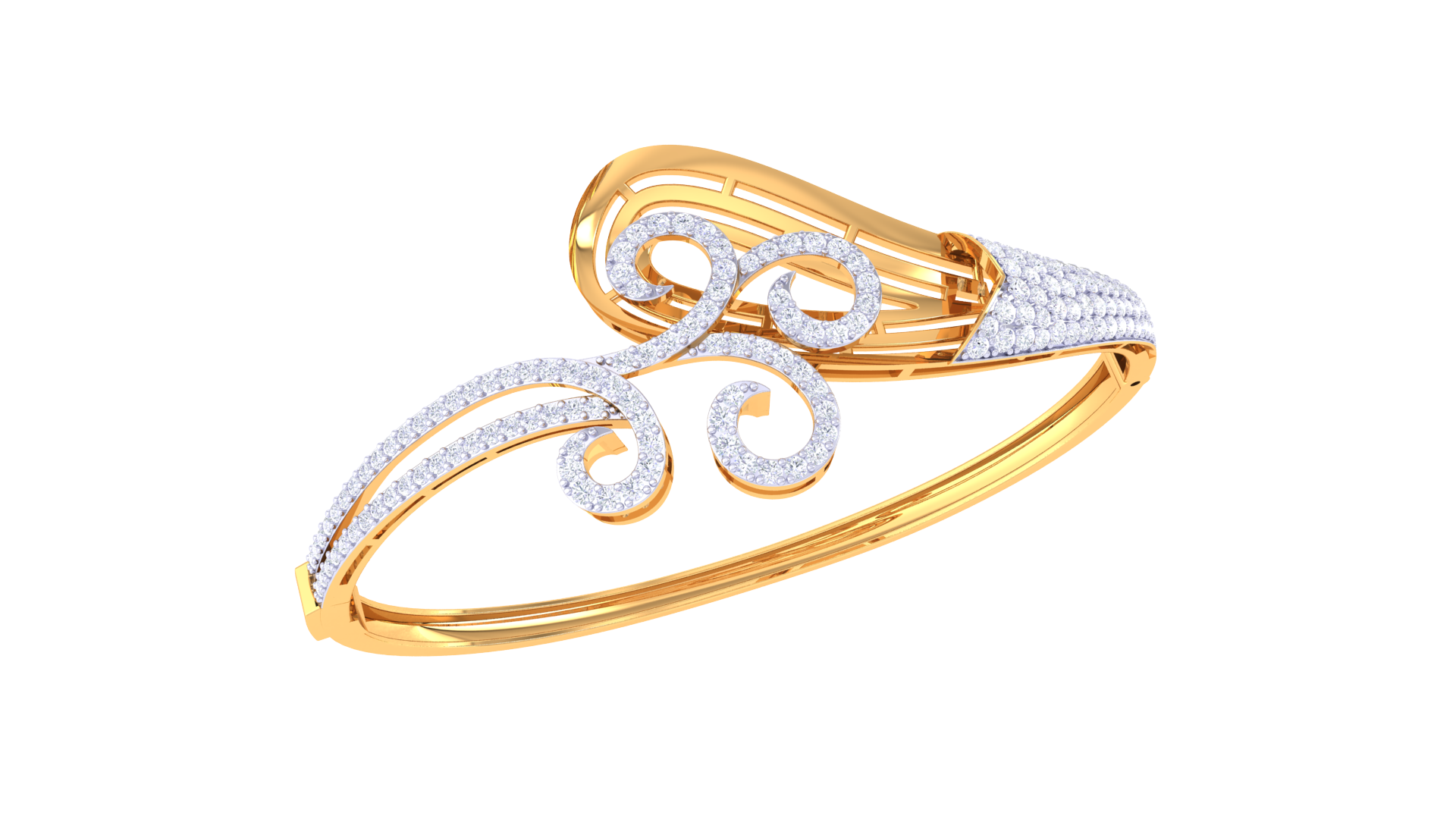 This elegant bangle features 12.64 grams of lustrous gold, beautifully accented with 1.54 carats of round-cut diamonds.
