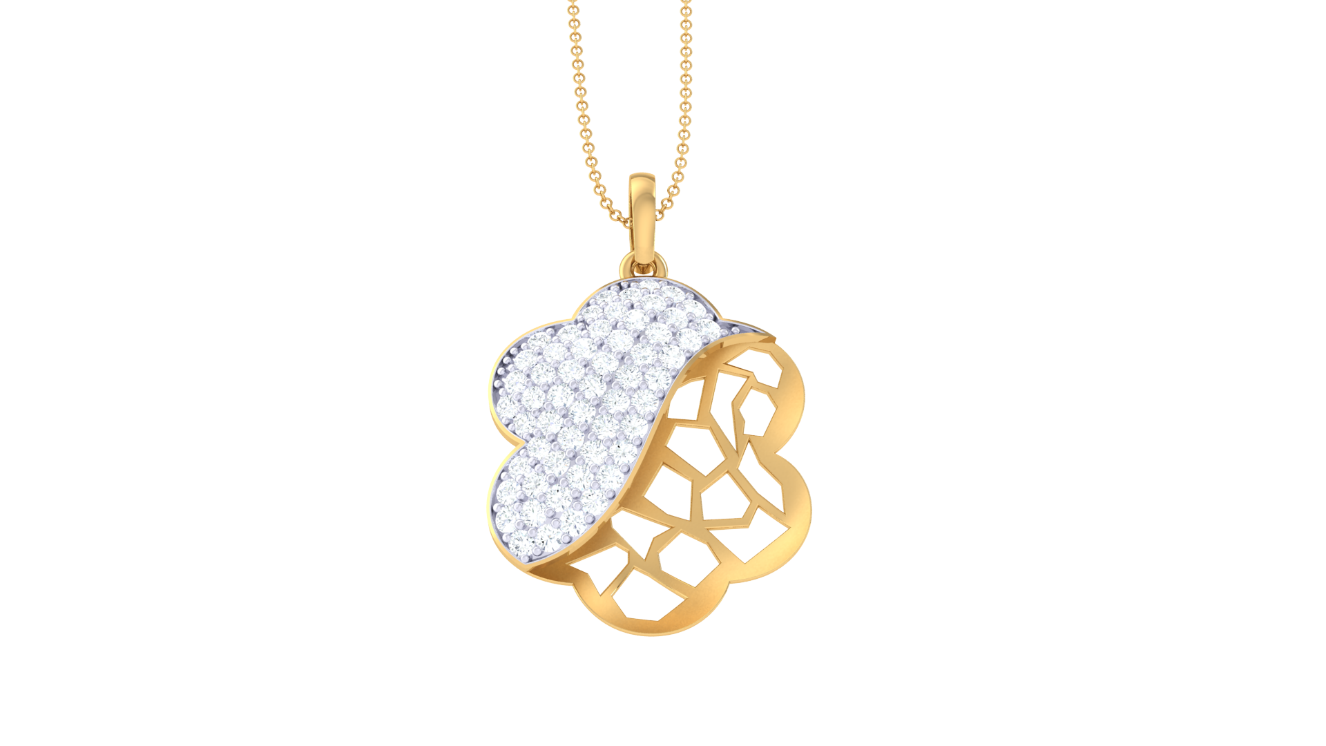 Golden Cloud & Petal Pendent – 0.43 Ct Pave Set Diamonds