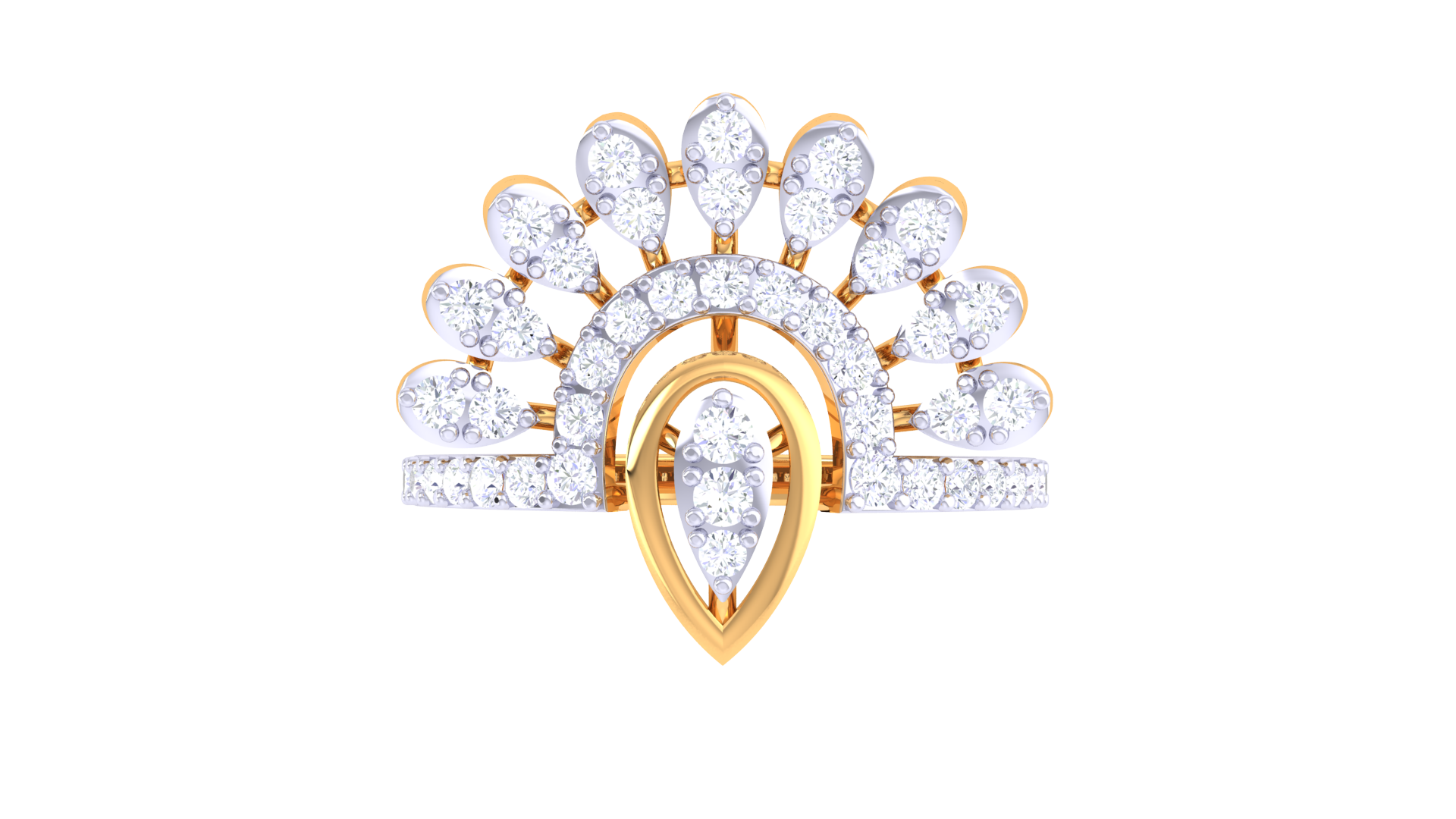 Commanding attention with its regal symmetry and radiant sparkle, the Regal Teardrop Fan Ring is a masterpiece of opulence and design.