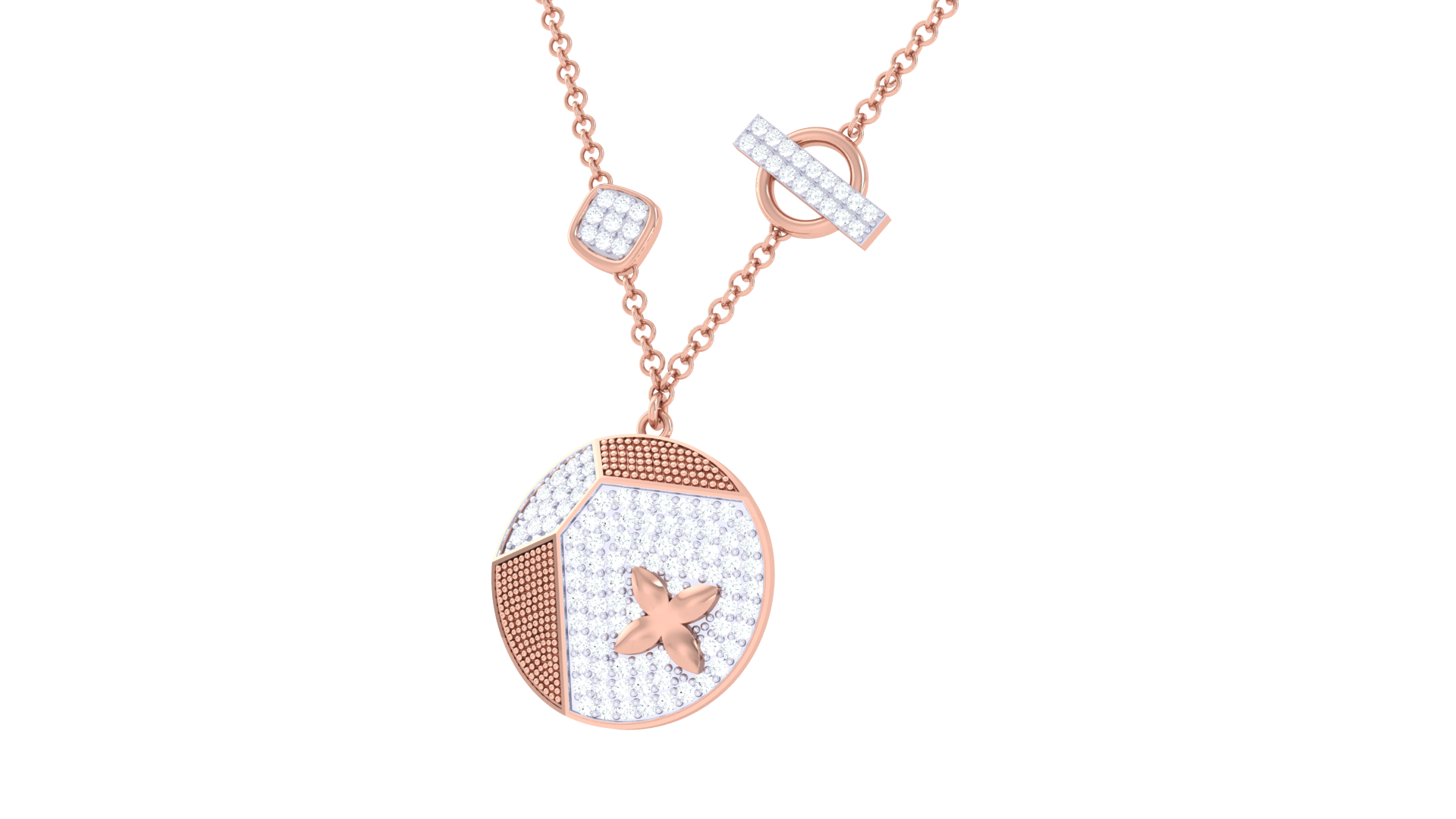 Geometric Charm Gold Pendent With Star Detail – 0.83 Ct Pave Diamonds