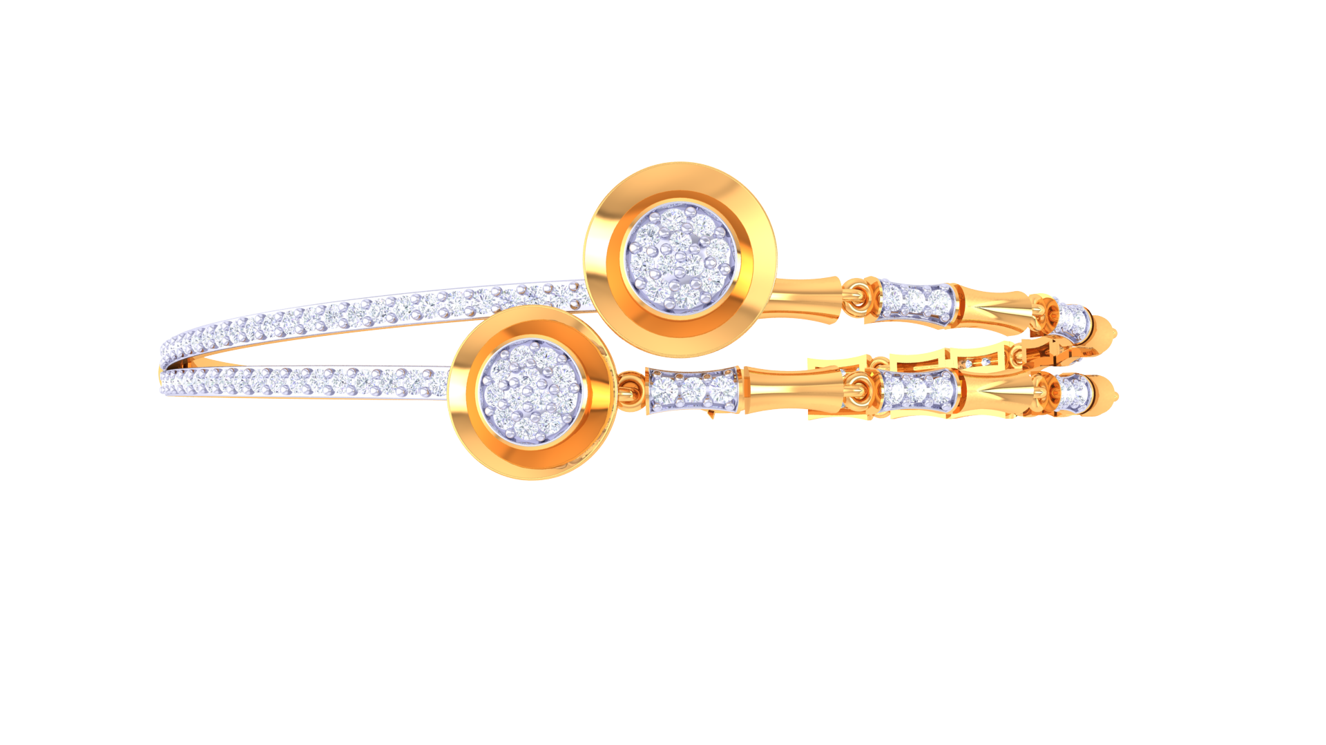 The dual-strand band features one sleek gold arc and one diamond-lined strand, connected by sculpted gold segments that add depth and elegance.