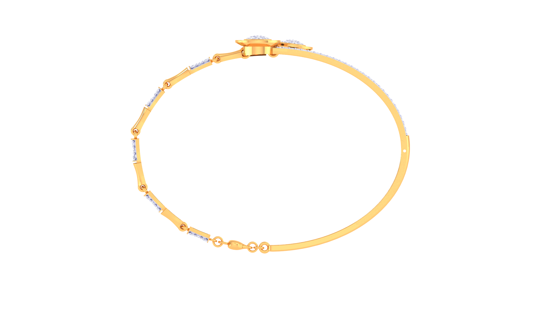Crafted in 5.68 grams of radiant gold, this bracelet is a celebration of symmetry and sparkle.