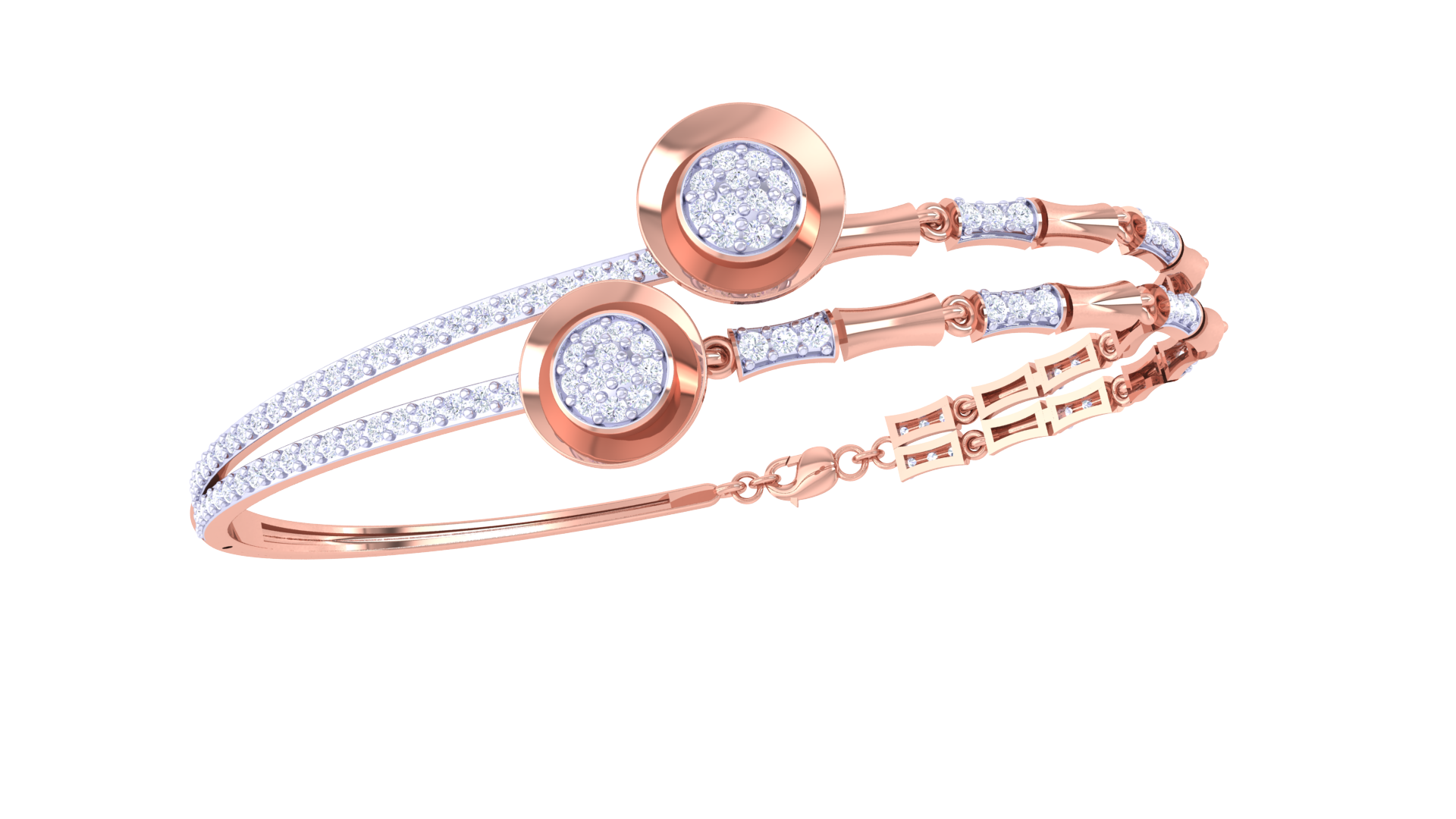 Twin Halo Gold Bracelet With Dual Circular Accents - 0.63 Ct Diamonds