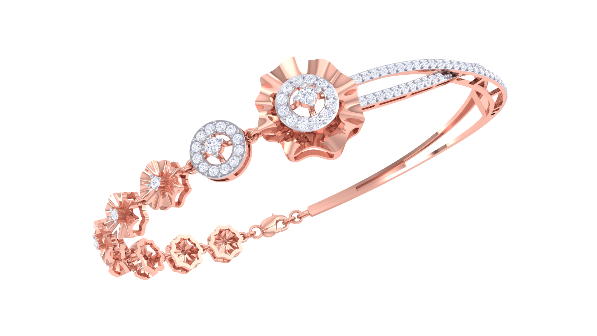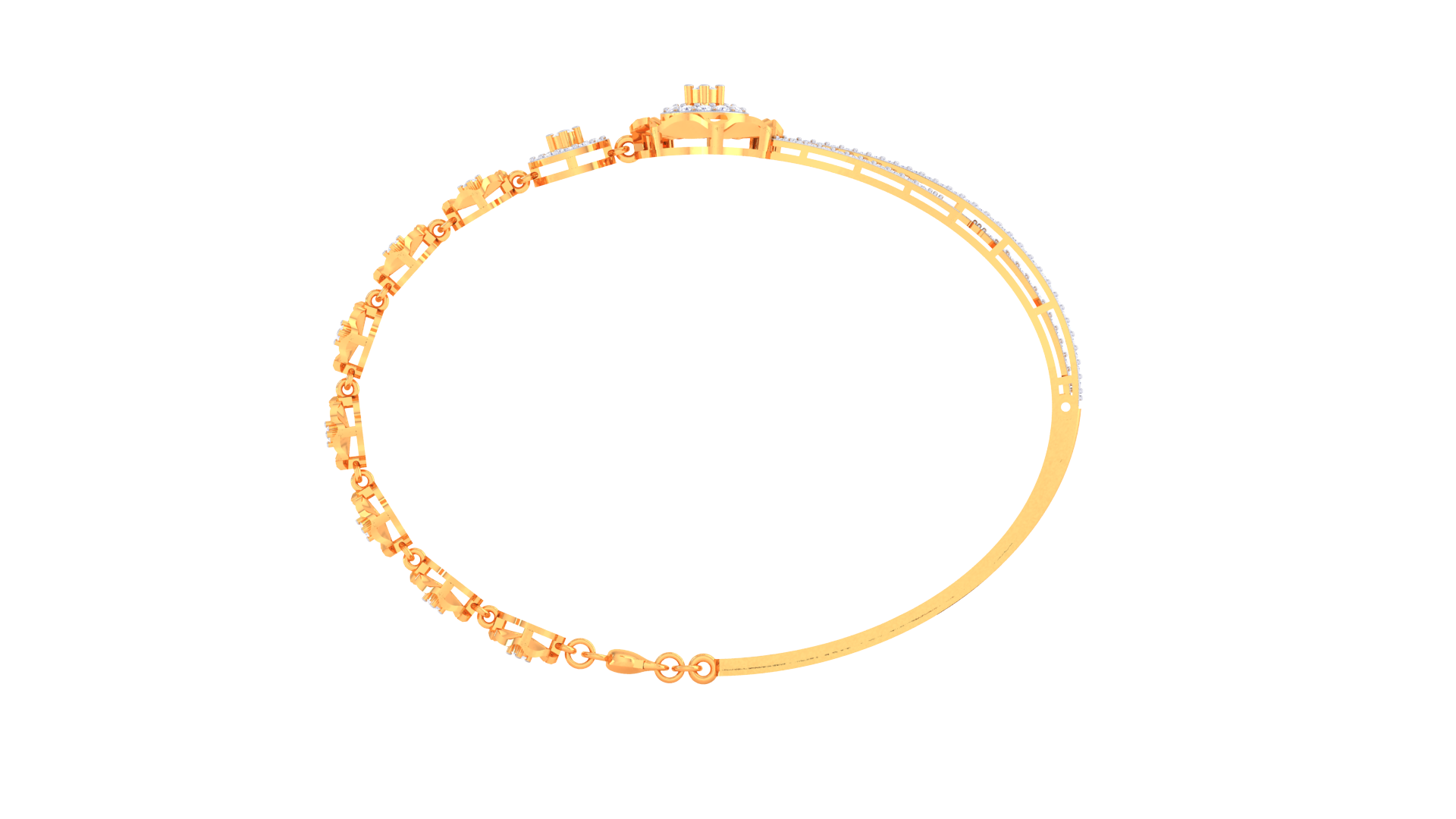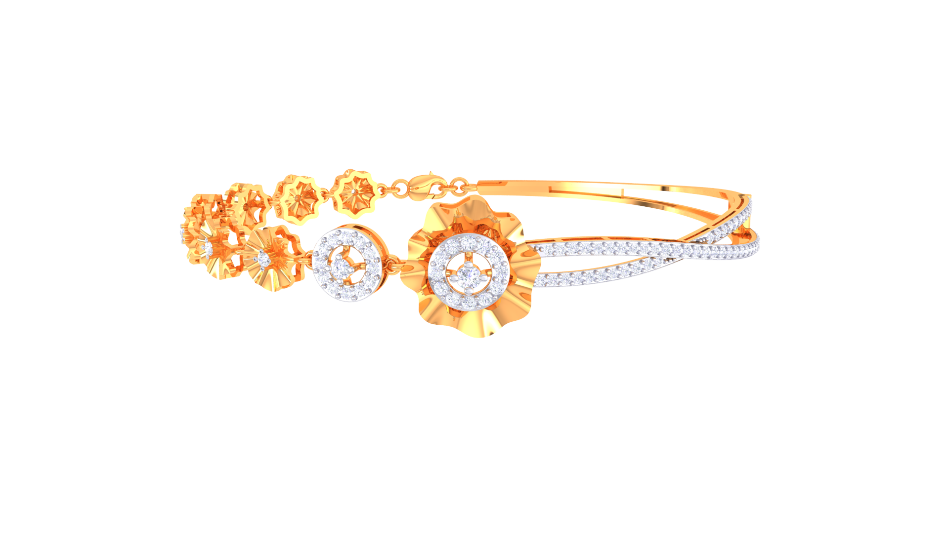 A symphony of elegance and craftsmanship, this 22K gold bracelet weighs 8.08 grams and features a harmonious blend of floral artistry and diamond brilliance.