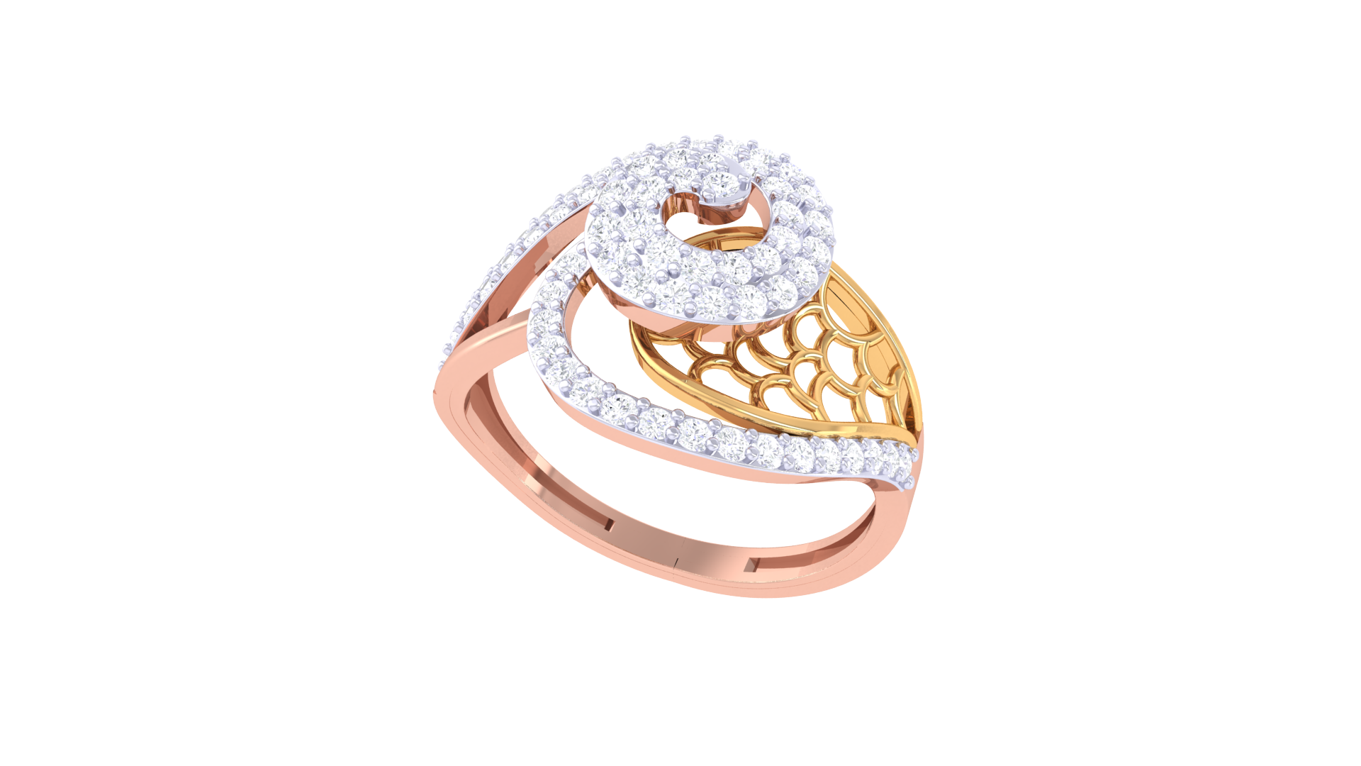 A masterpiece of dual-tone elegance, this ring is crafted from 3.36 grams of rose and yellow gold, blending warmth and brilliance in a single sculptural form.