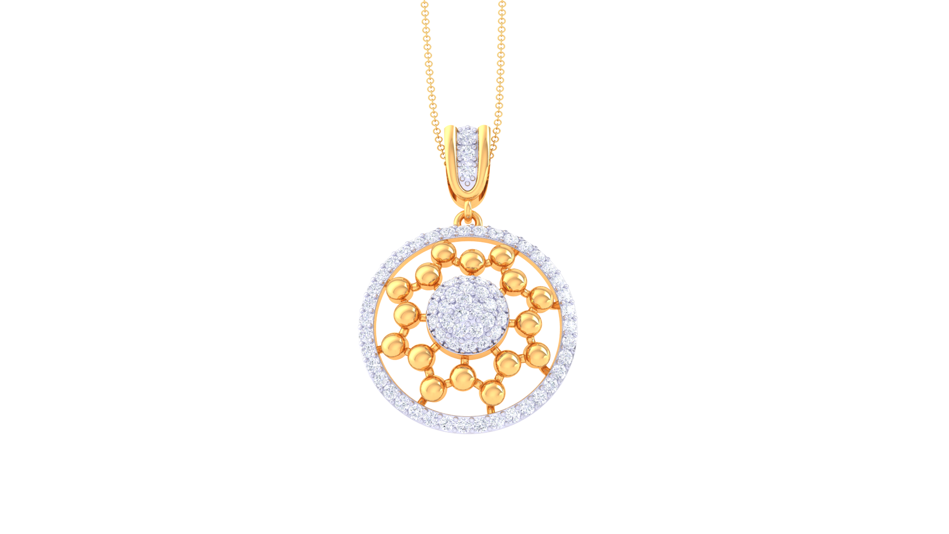 Elevate your elegance with this intricately crafted circular pendant, featuring a dazzling 0.81 carat ensemble of brilliant-cut diamonds.