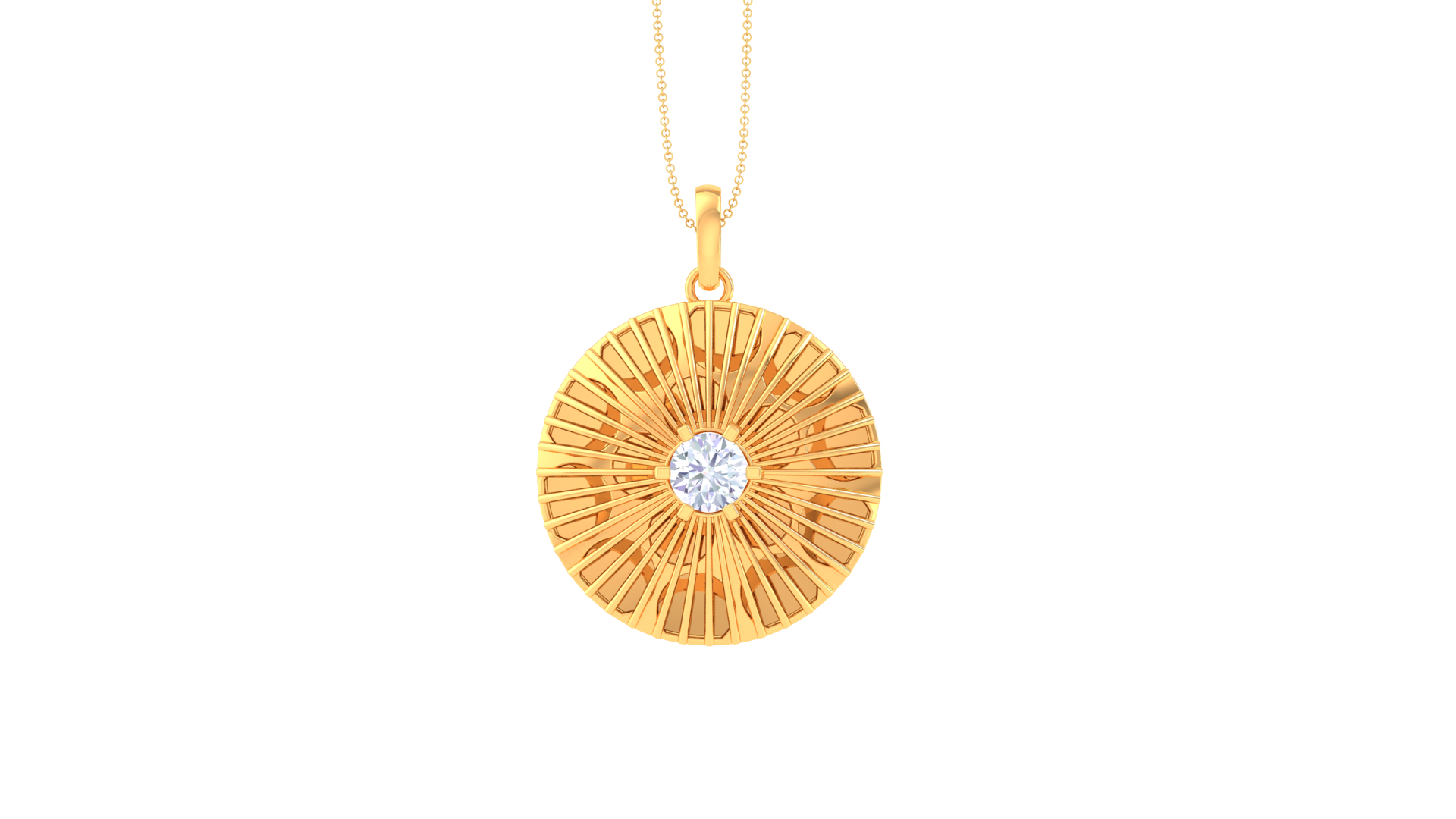 Crafted in 5.52 grams of luminous gold, this pendant radiates brilliance through a sunburst-inspired design that captures light and attention alike.