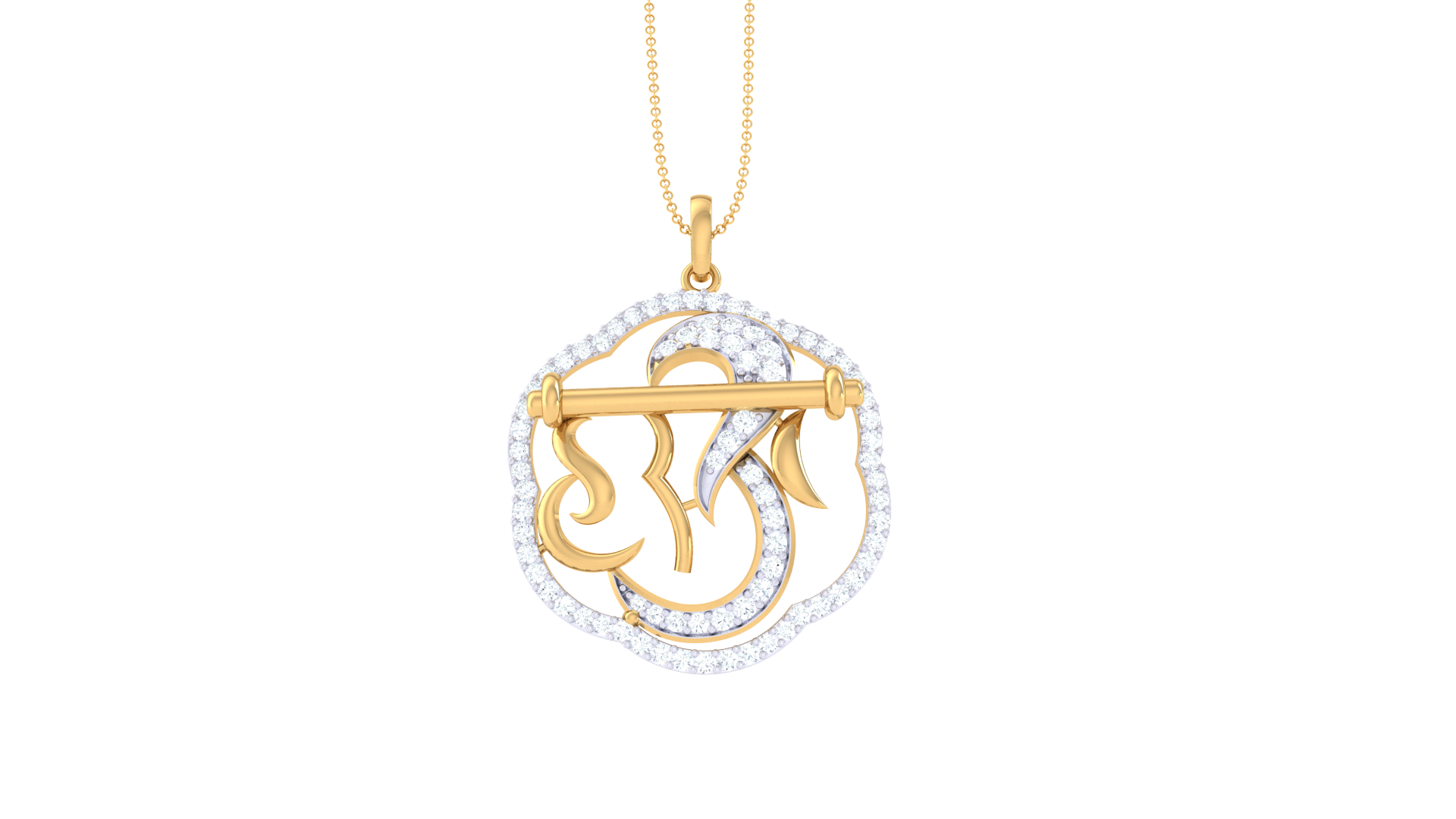 Hari Om Goldn Pendent - 0.54 Ct Dazzling Diamonds Halo