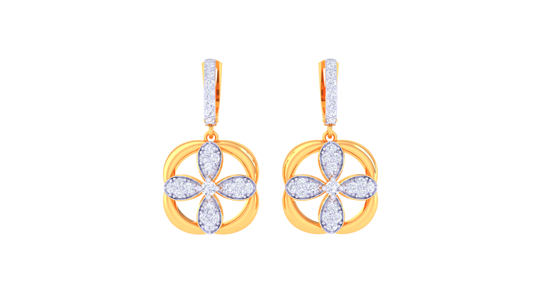Sculpted in 5.97 grams of luminous yellow gold, each earring showcases a four-petal diamond bloom encased in a softly twisted gold frame.