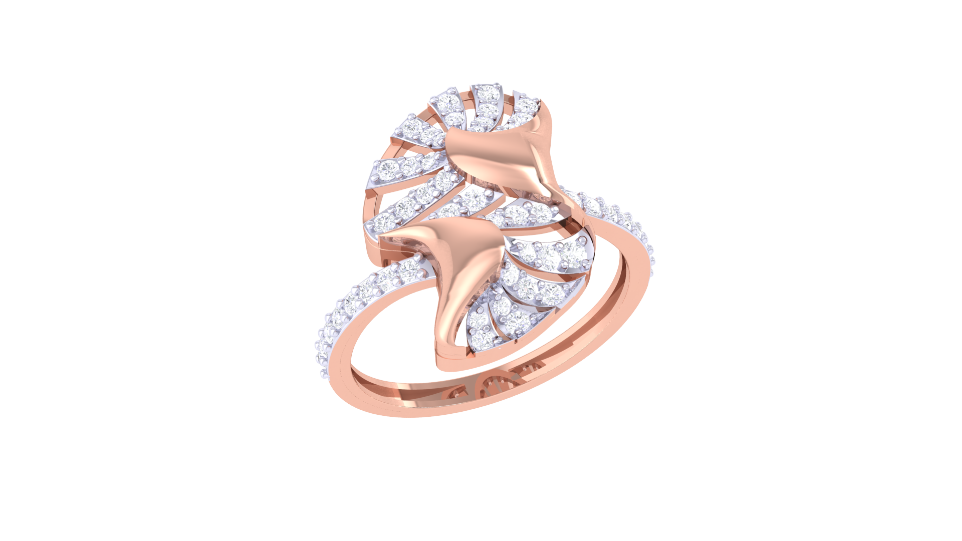 A poetic fusion of nature and luxury, this rose gold ring features a mirrored leaf motif delicately adorned with 0.37 carats of brilliant-cut diamonds.