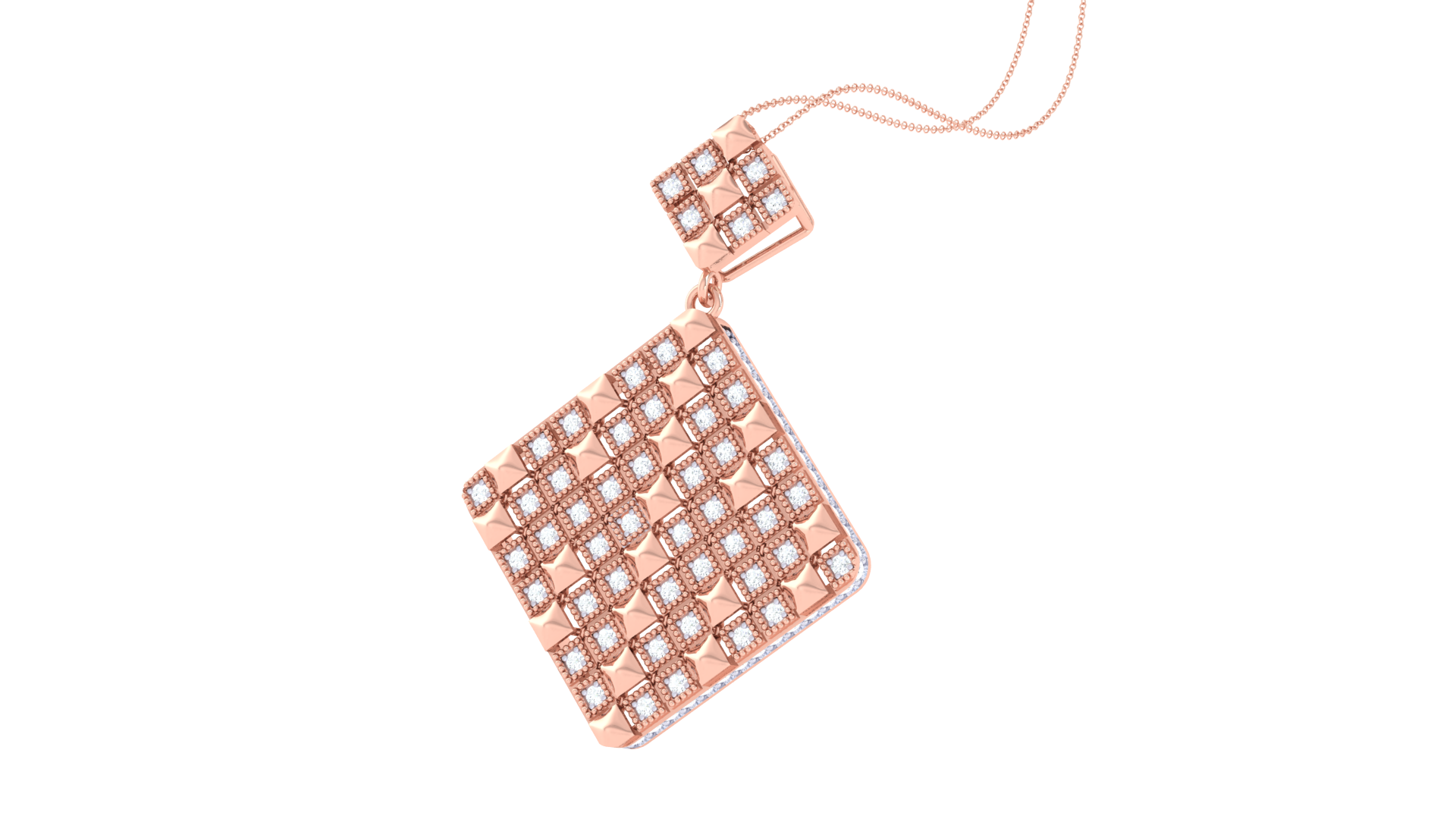 Rhombus Pave Charm Pendent In Gold - 0.57 Ct Sparking Diamond