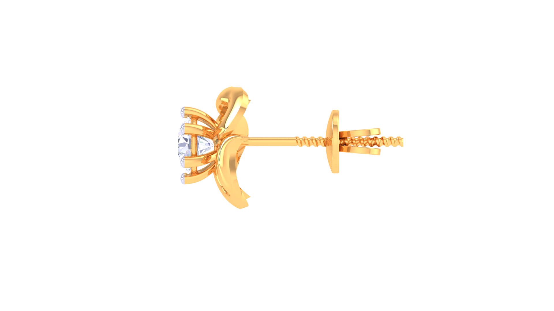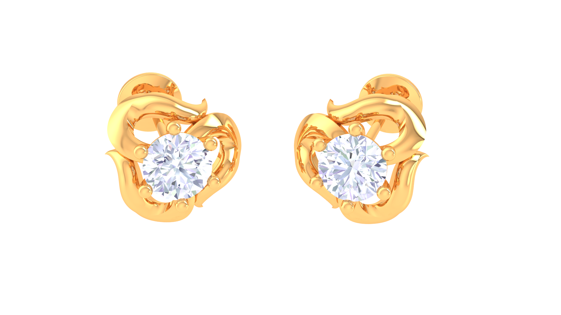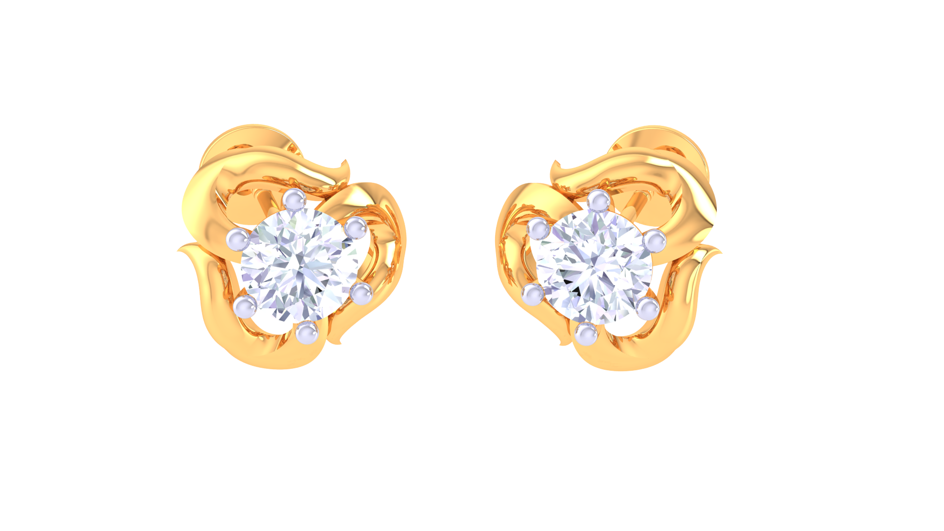 Each earring showcases a round brilliant-cut diamond totaling 0.37 carats, securely nestled within a flowing, petal-inspired gold setting.