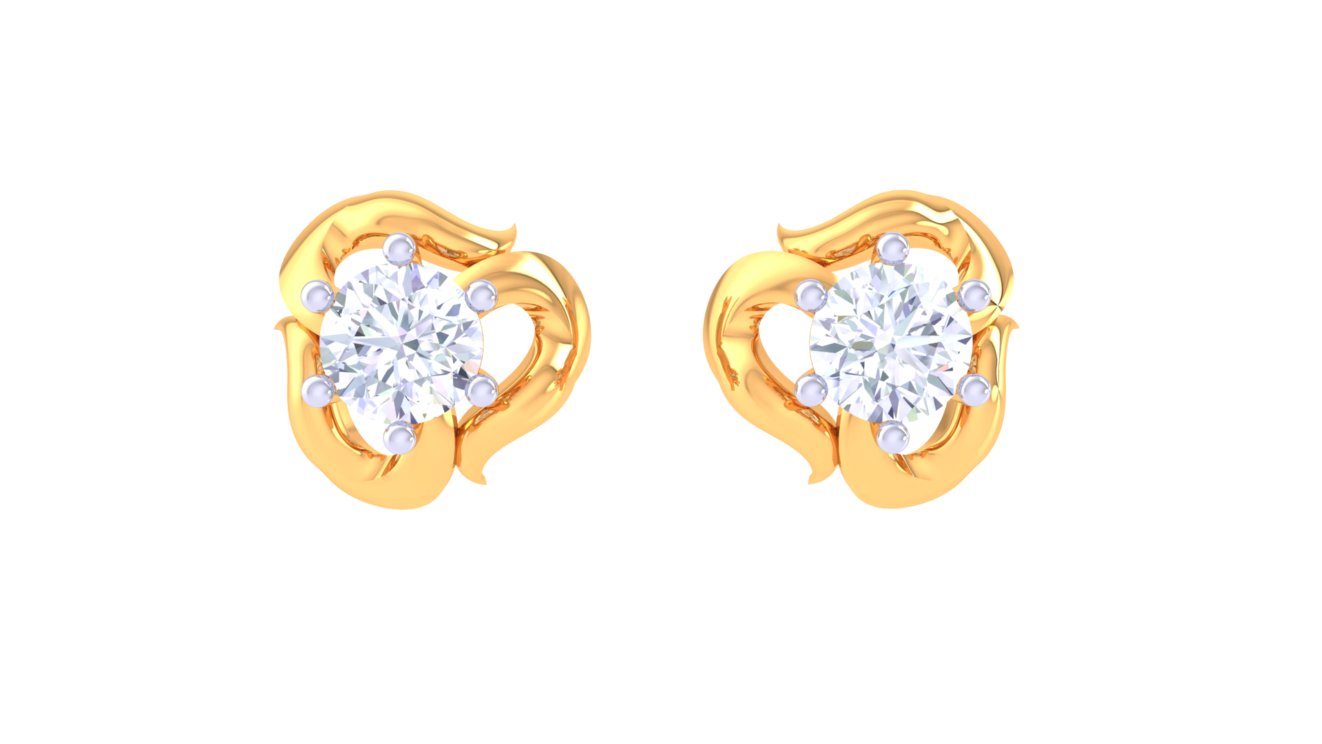 Rose Petal Diamond Stud Earrings In Gold - 0.37 Ct