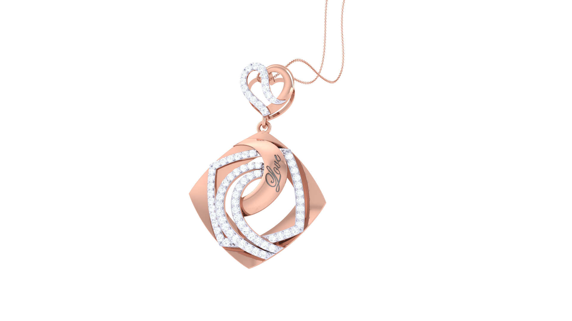 The heart-shaped bail leads into a diamond-shaped frame, adorned with 0.50 carats of brilliant-cut diamonds.