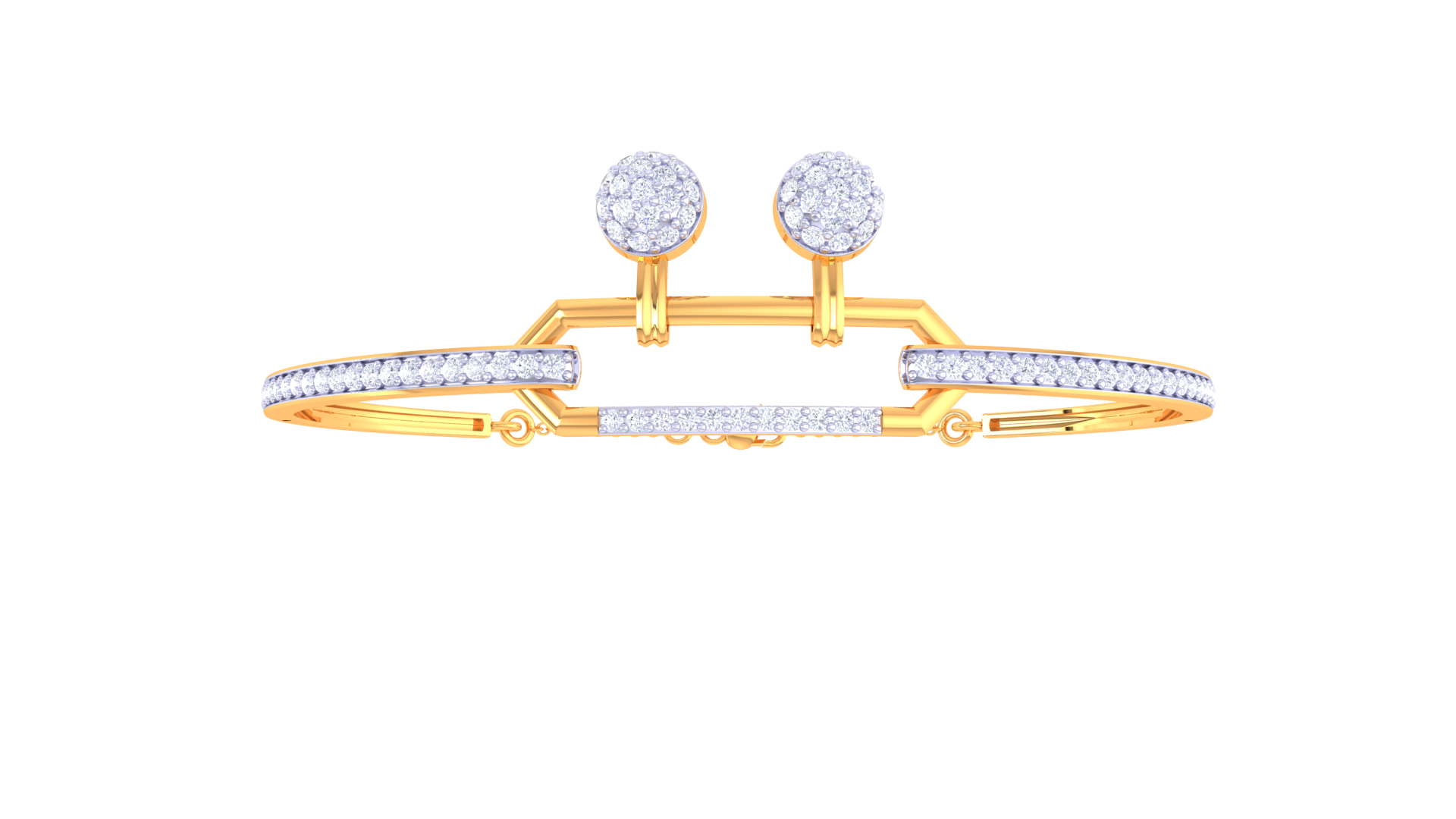 Architectural elegance meets radiant sparkle in this striking bracelet, crafted from 5.72 grams of polished gold and adorned with 0.85 carats of brilliant diamonds.