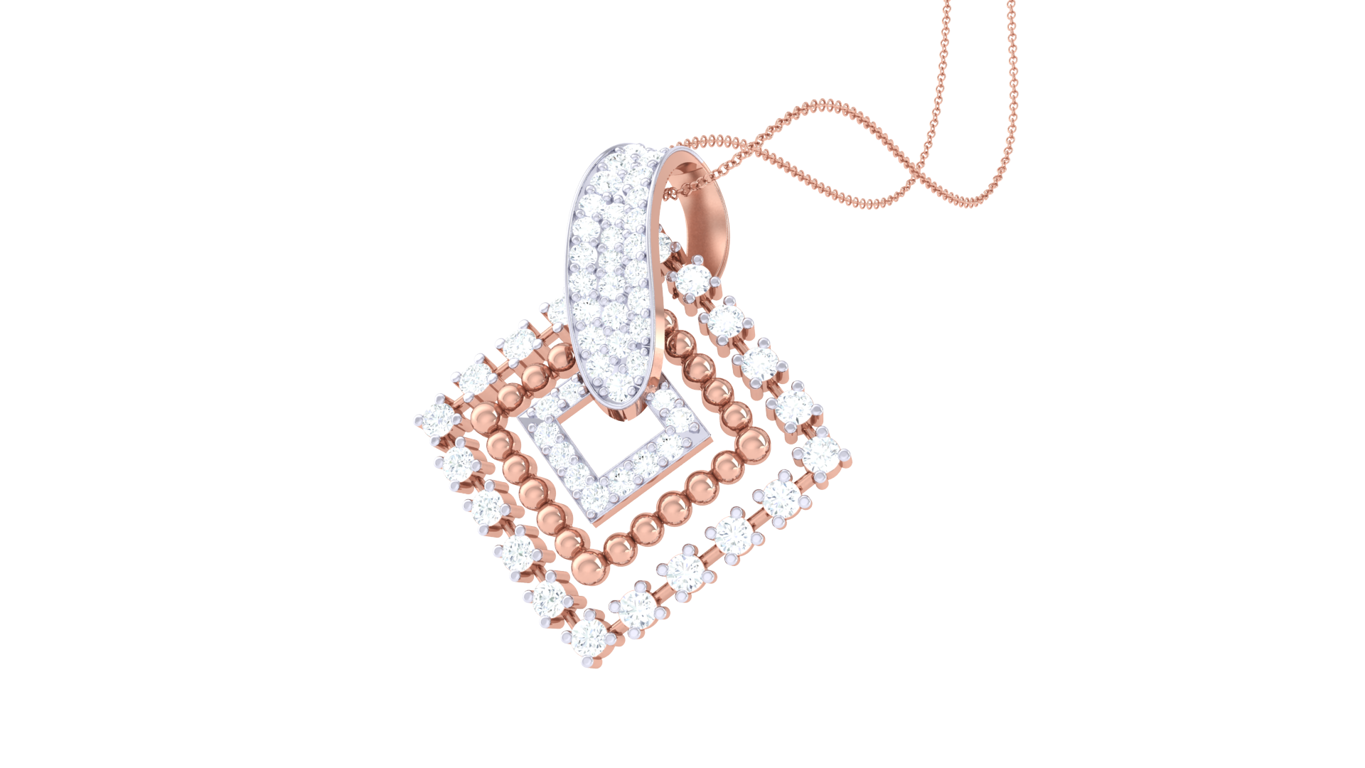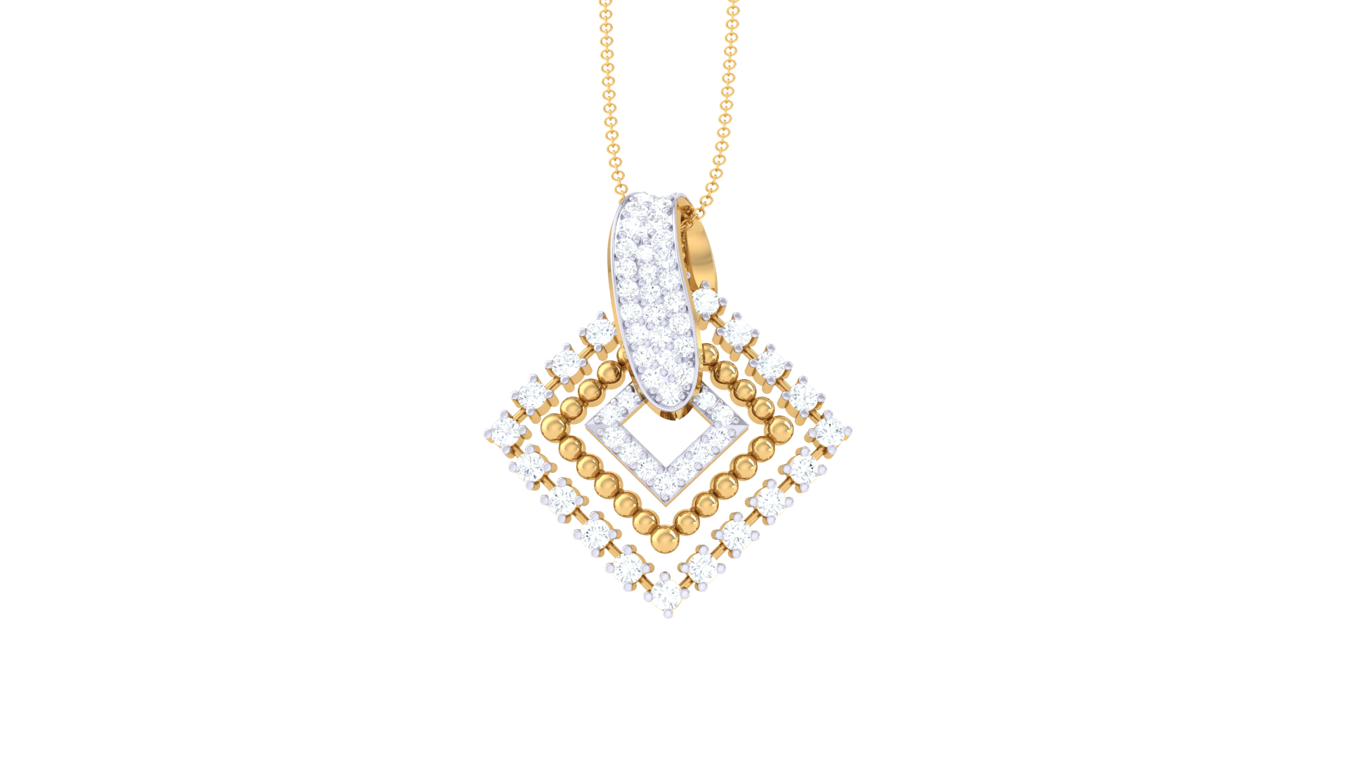 Layered Diamond-Frame Pendant In Gold – 0.51 Ct Round cut