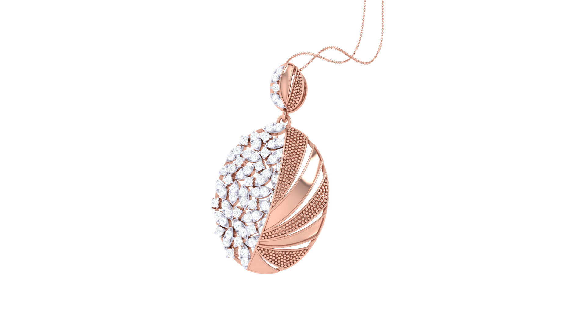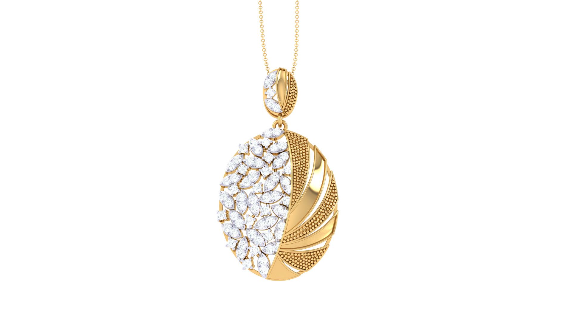 Dual-Texture Oval Pendant In Gold – 0.54 Ct Pave Set Diamonds