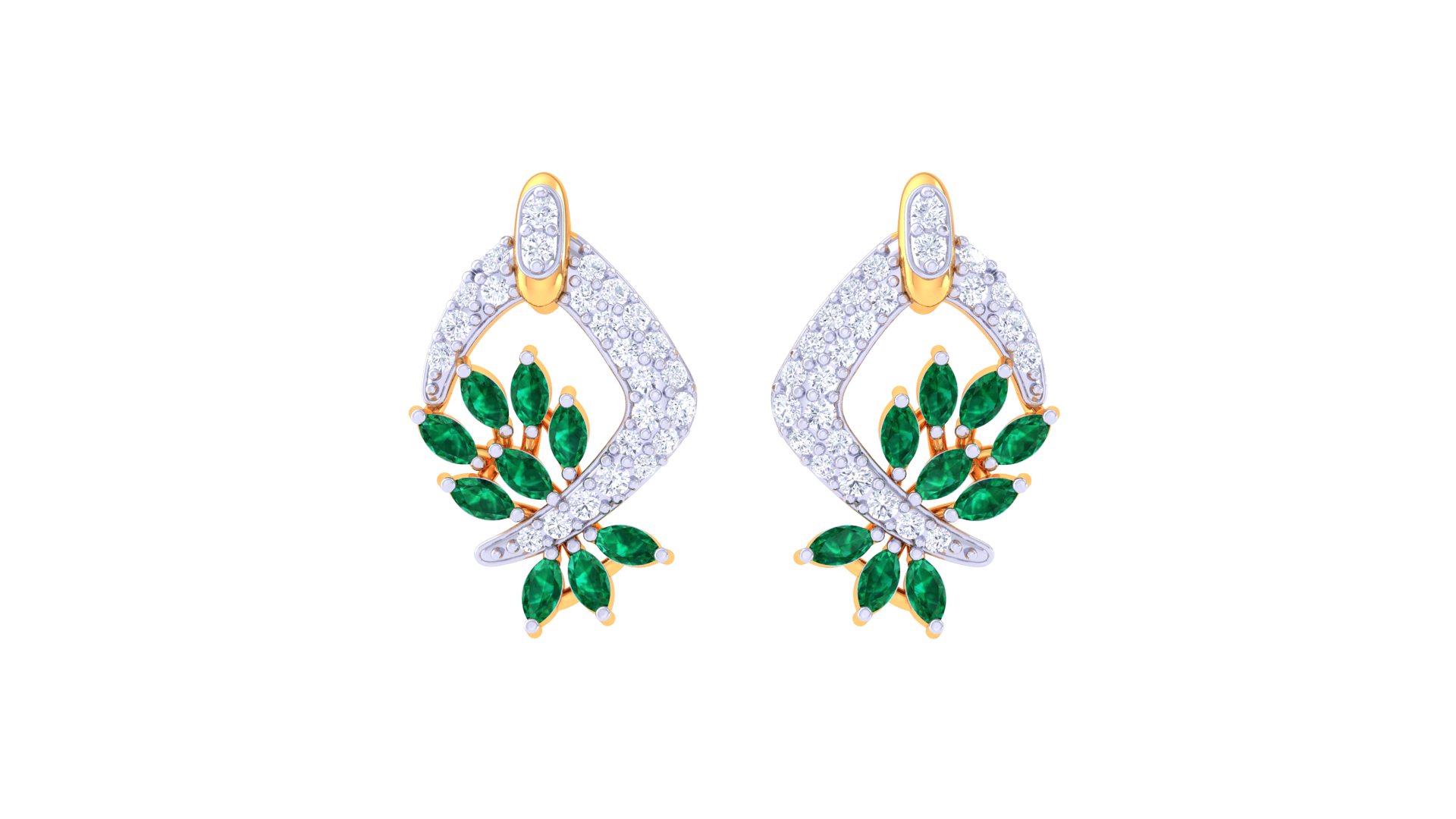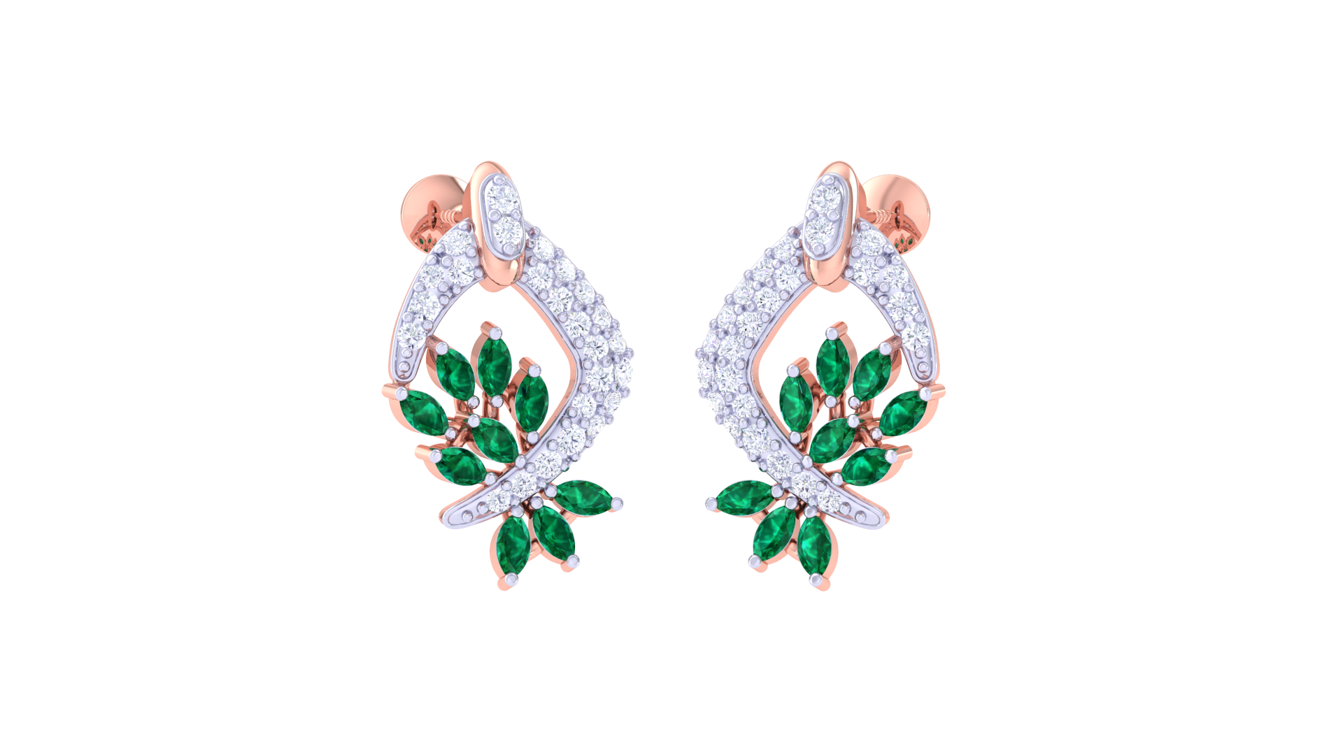 Emerald Leaf Swirl Stud Earrings In Gold - 0.67 Ct Dazzling Diamond