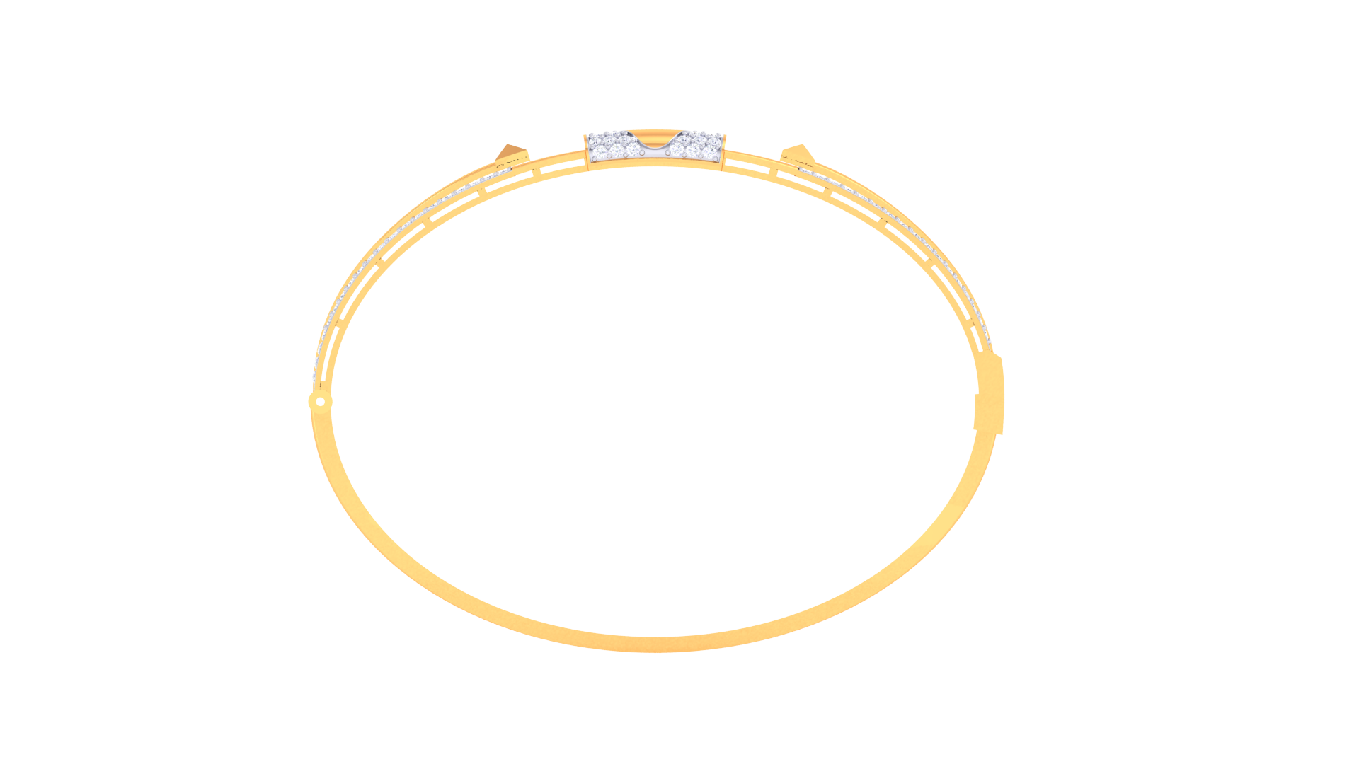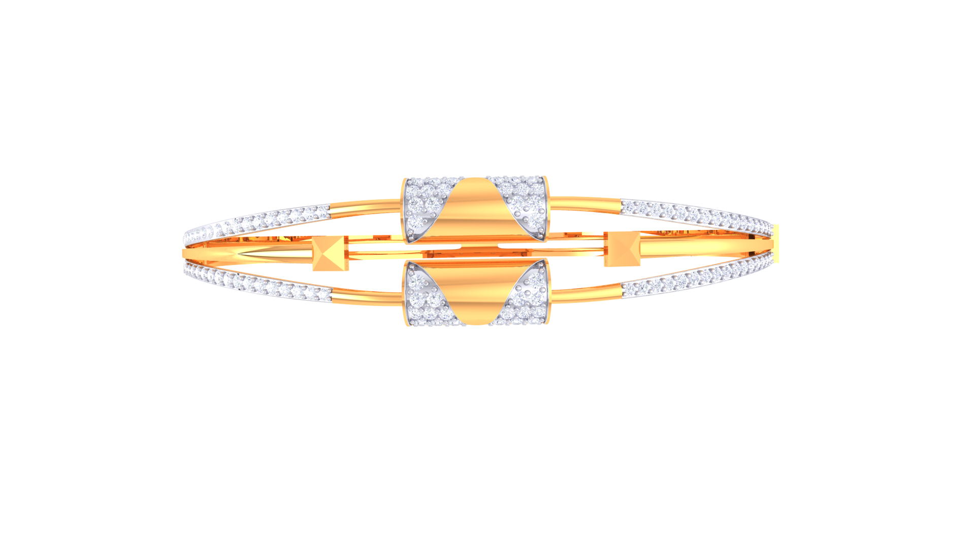 Crafted in 18K gold and weighing 8.42 grams, this bangle is a bold expression of symmetry and sparkle.
