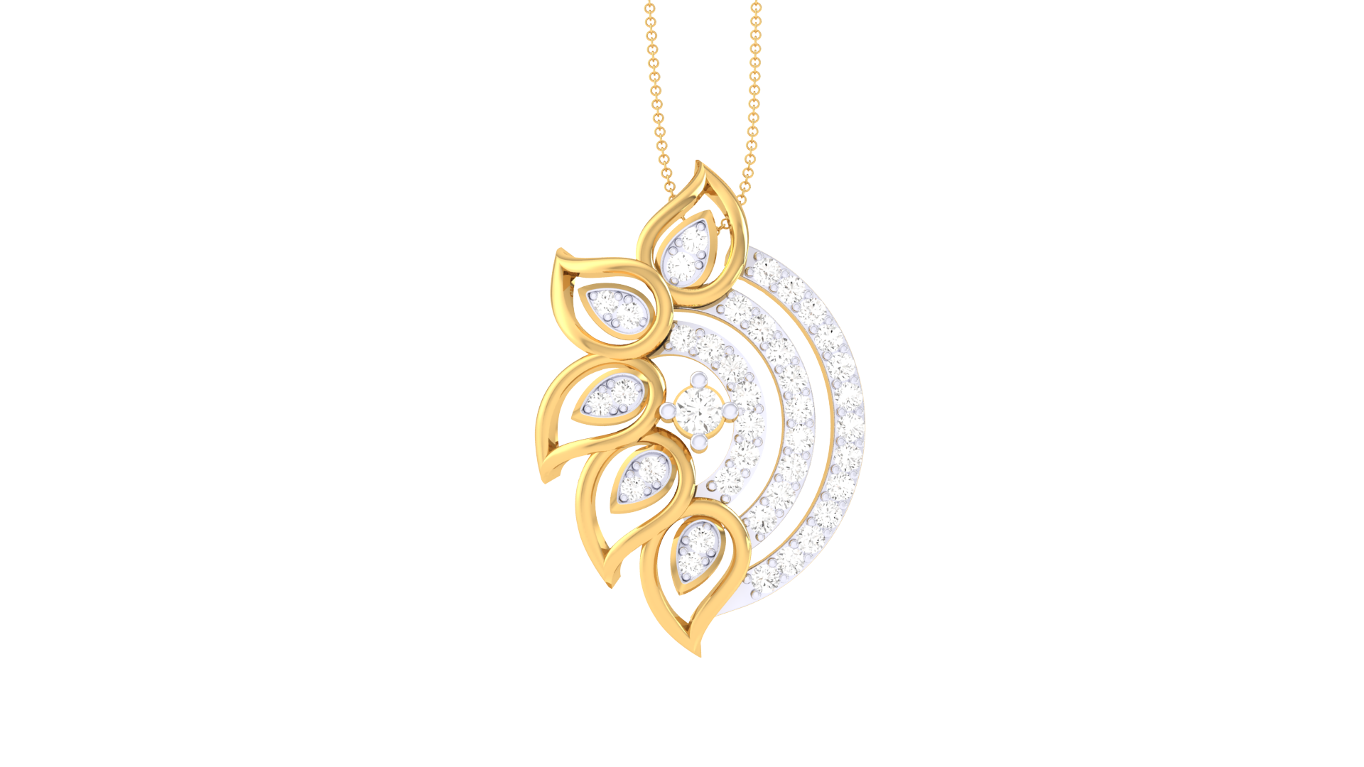 Floral & Geometric Fusion Golden Pendant - 0.44 Ct Diamonds