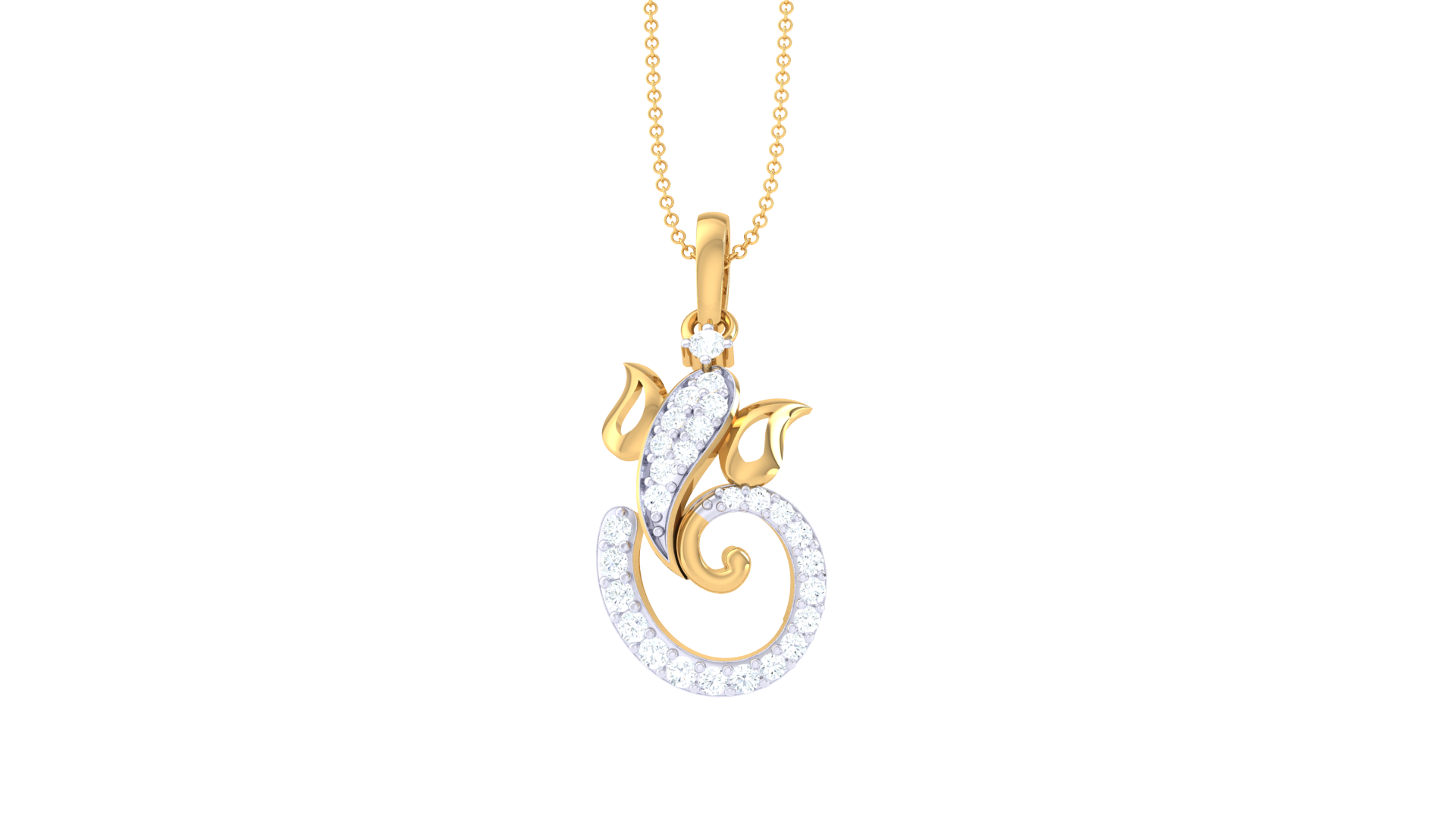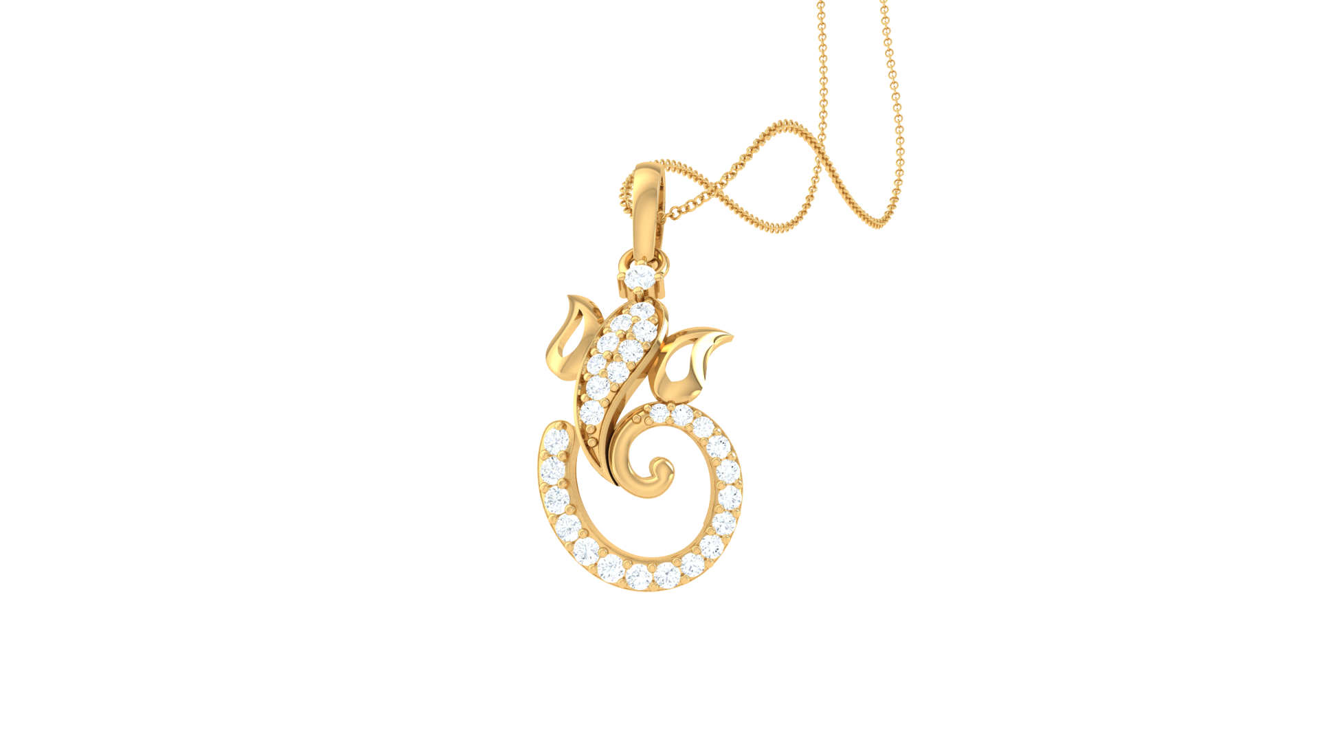 Invoke blessings and brilliance with this exquisitely crafted Ganesha pendant, sculpted in 0.38 grams of radiant 18K gold and adorned with 0.15 carats of shimmering diamonds.