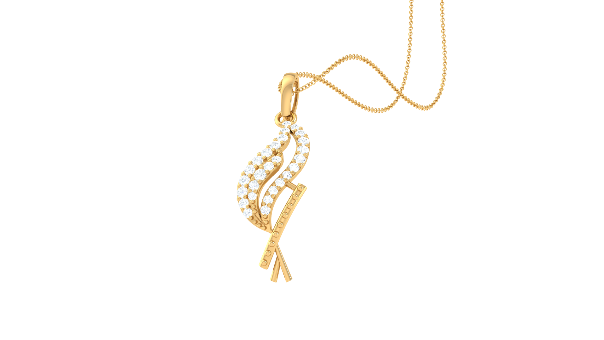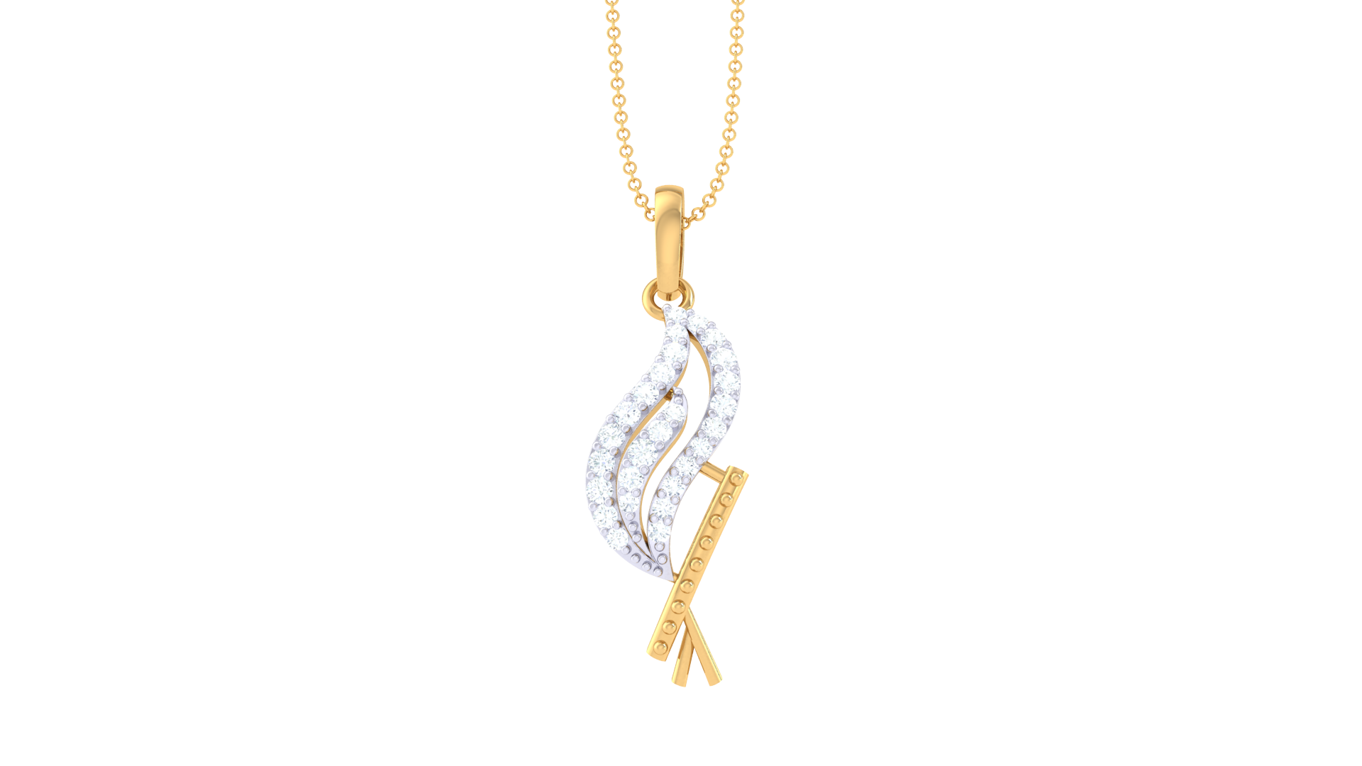 A graceful fusion of fire and form, this pendant is sculpted in 0.64 grams of luminous 18K gold and adorned with 0.14 carats of sparkling diamonds.