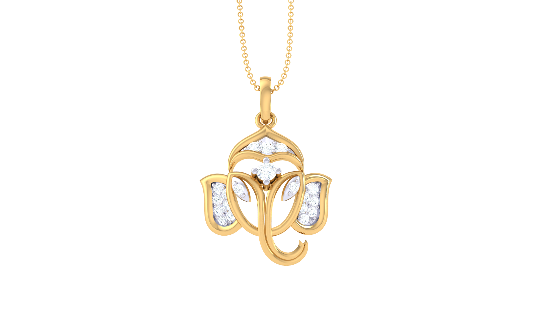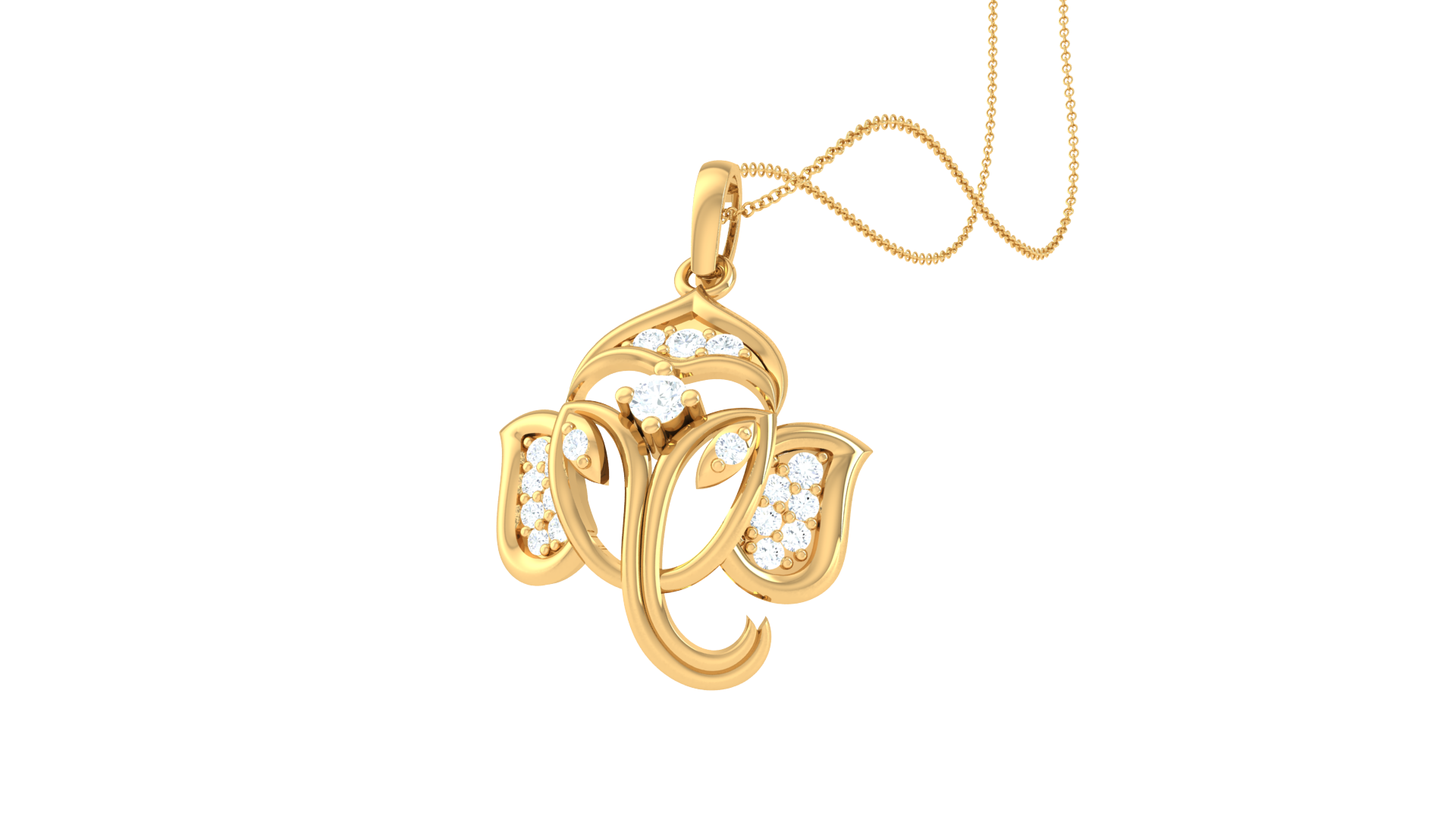Graceful Ganesha Pendant In Gold - 0.13 Ct Diamond Highlights